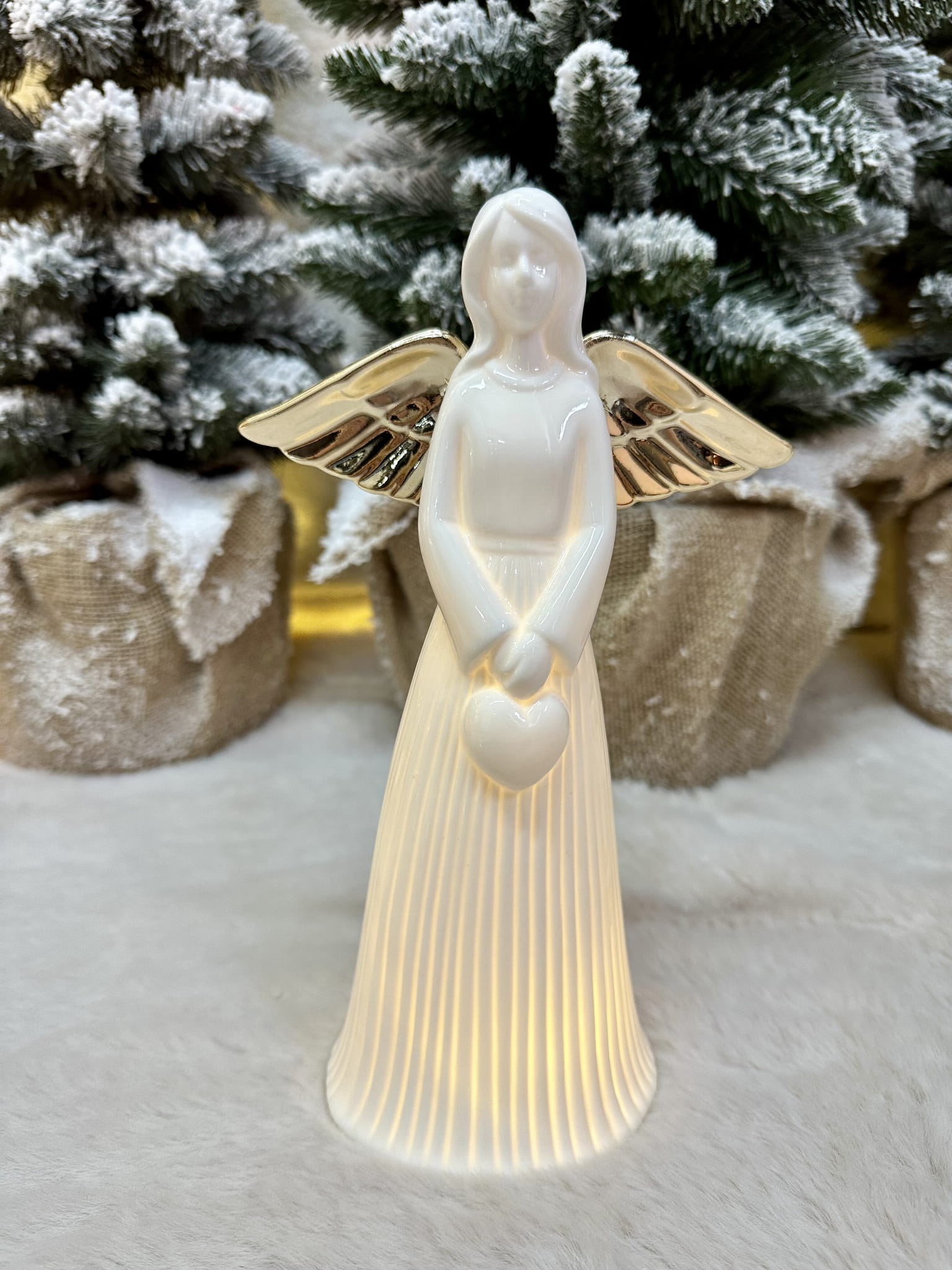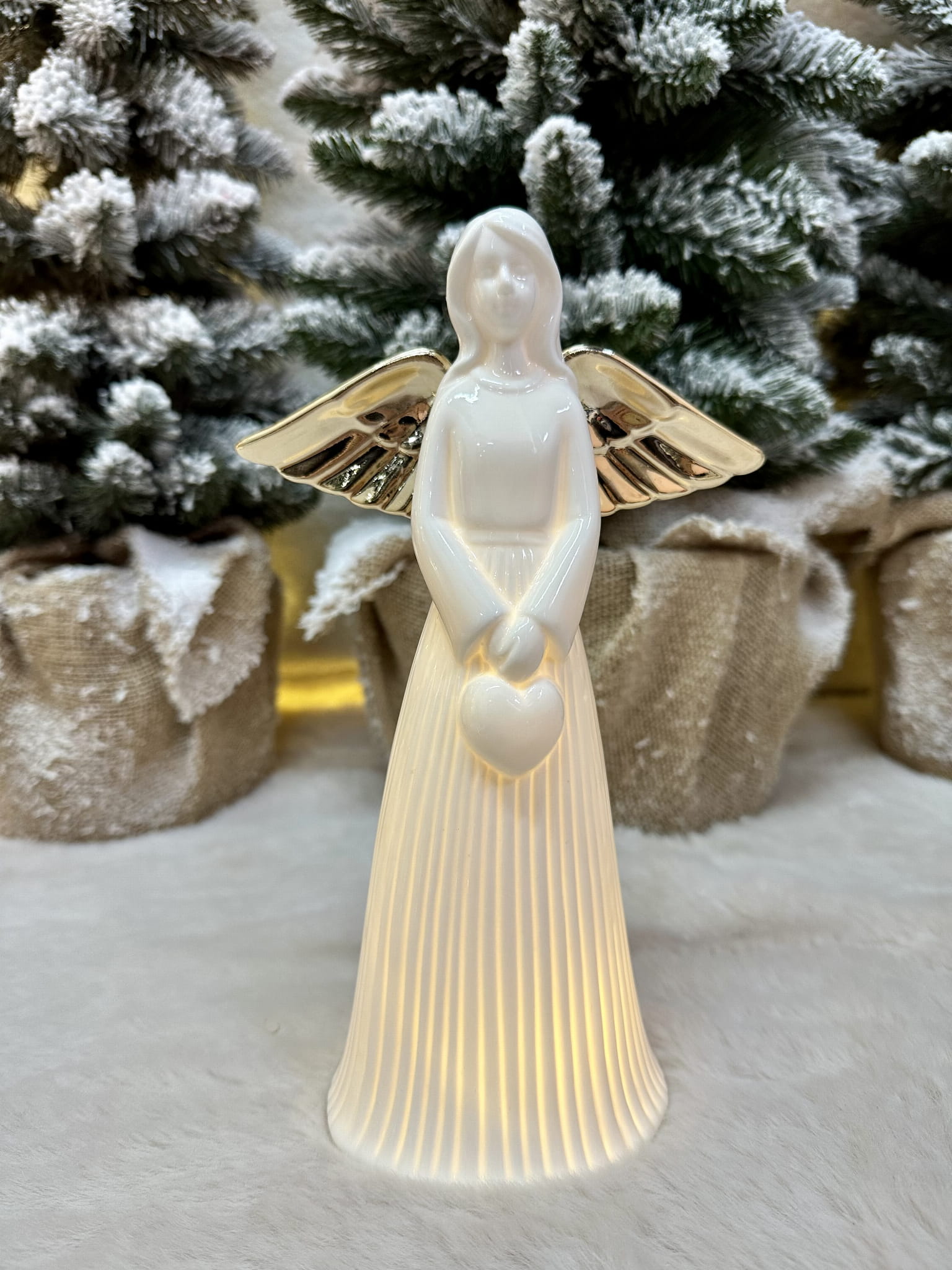 Aniol podświetlany, na baterie. Pięknie błyszcząca suknia. Skrzydła lustrzane złote.