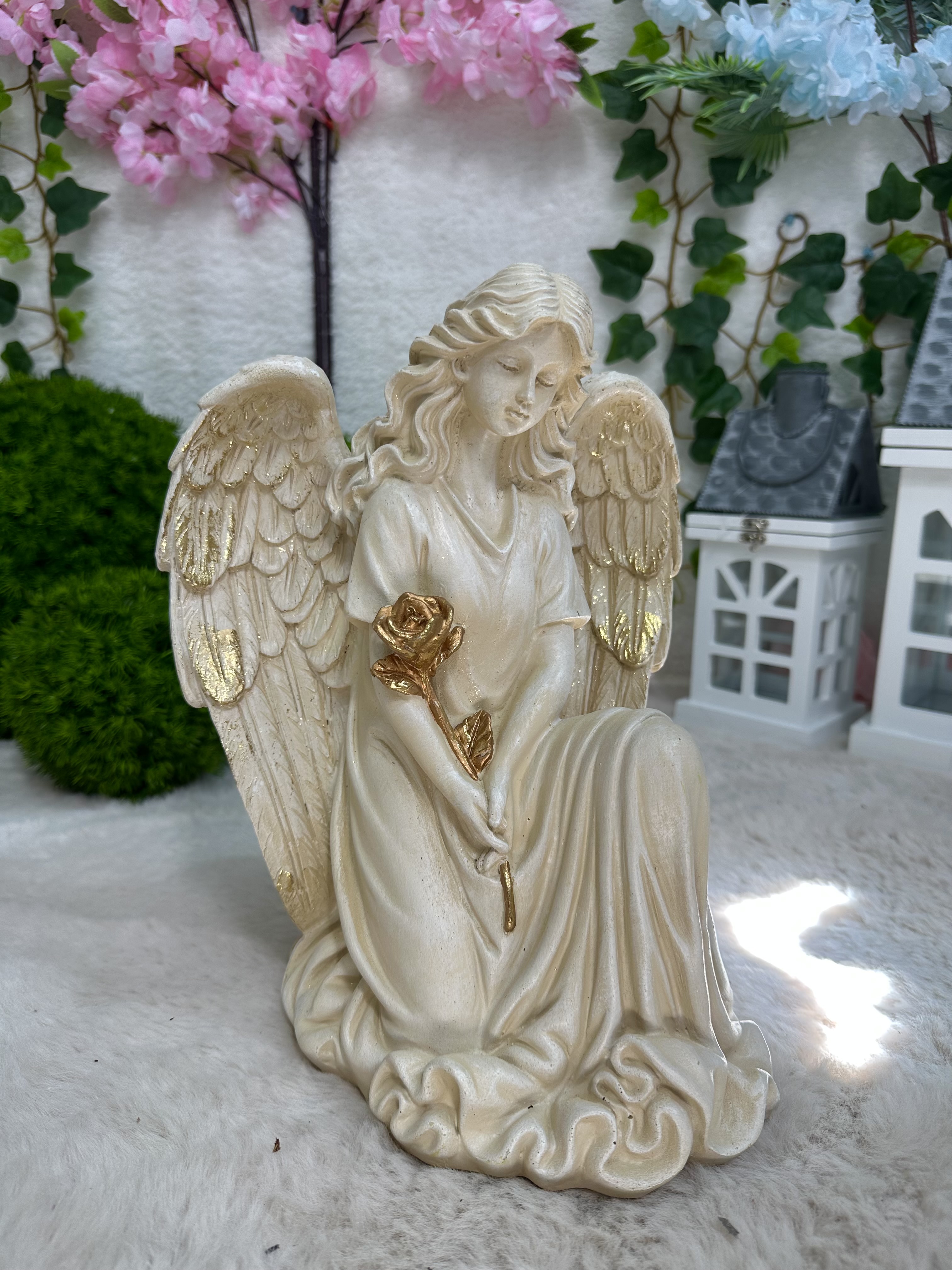 Anioł beżowo-złoty klęczący 31