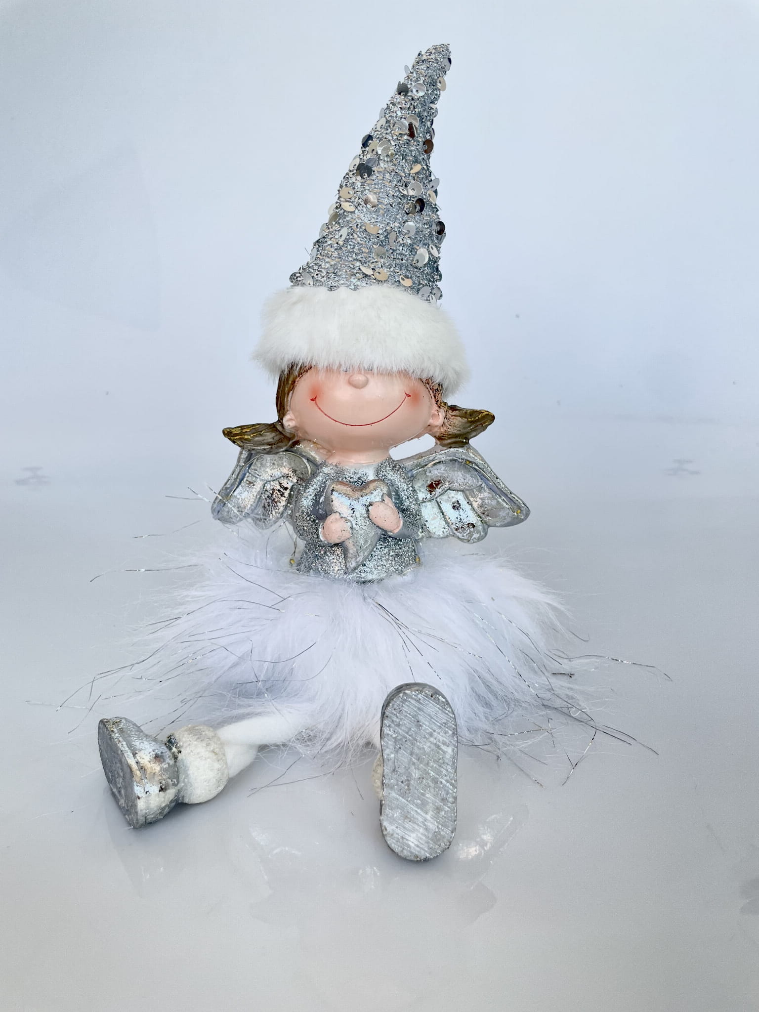 Aniołek dziewczynka cekinowa srebrna 25