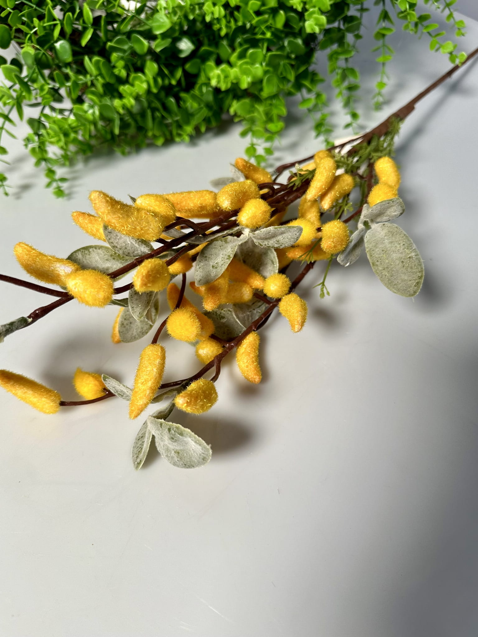 Sztuczna gałązka, która po latach będzie wyglądała tak samo świeżo i pięknie. Gałązkę można zginać i dowolnie dopasować. Bukiet z gałązek pięknie ozdobi każdy zakątek Twojego domu, umieść je w ulubionym wazonie i ciesz się ich pięknym urokiem.