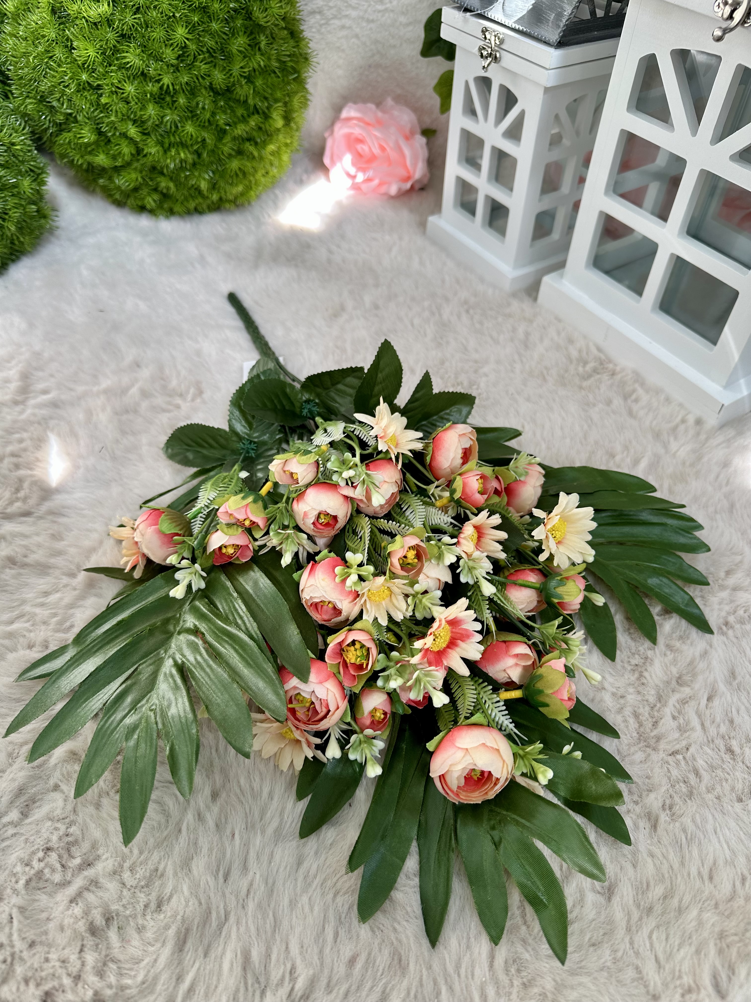 Sztuczne kwiaty, które do złudzenia przypomina żywe. Nawet po latach będzie wyglądała tak samo świeżo i pięknie. Kwiat można zginać i dowolnie dopasować. Bukiet z kwiatami pięknie ozdobi każdy zakątek Twojego domu, umieść je w ulubionym wazonie i ciesz się ich pięknym urokiem.