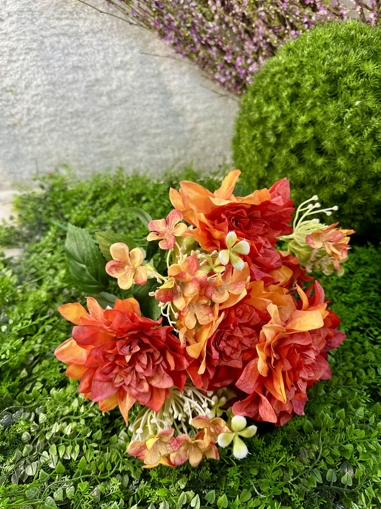 Sztuczne kwiaty, które do złudzenia przypomina żywe. Nawet po latach będzie wyglądała tak samo świeżo i pięknie. Kwiat można zginać i dowolnie dopasować. Bukiet z kwiatami pięknie ozdobi każdy zakątek Twojego domu, umieść je w ulubionym wazonie i ciesz się ich pięknym urokiem.
