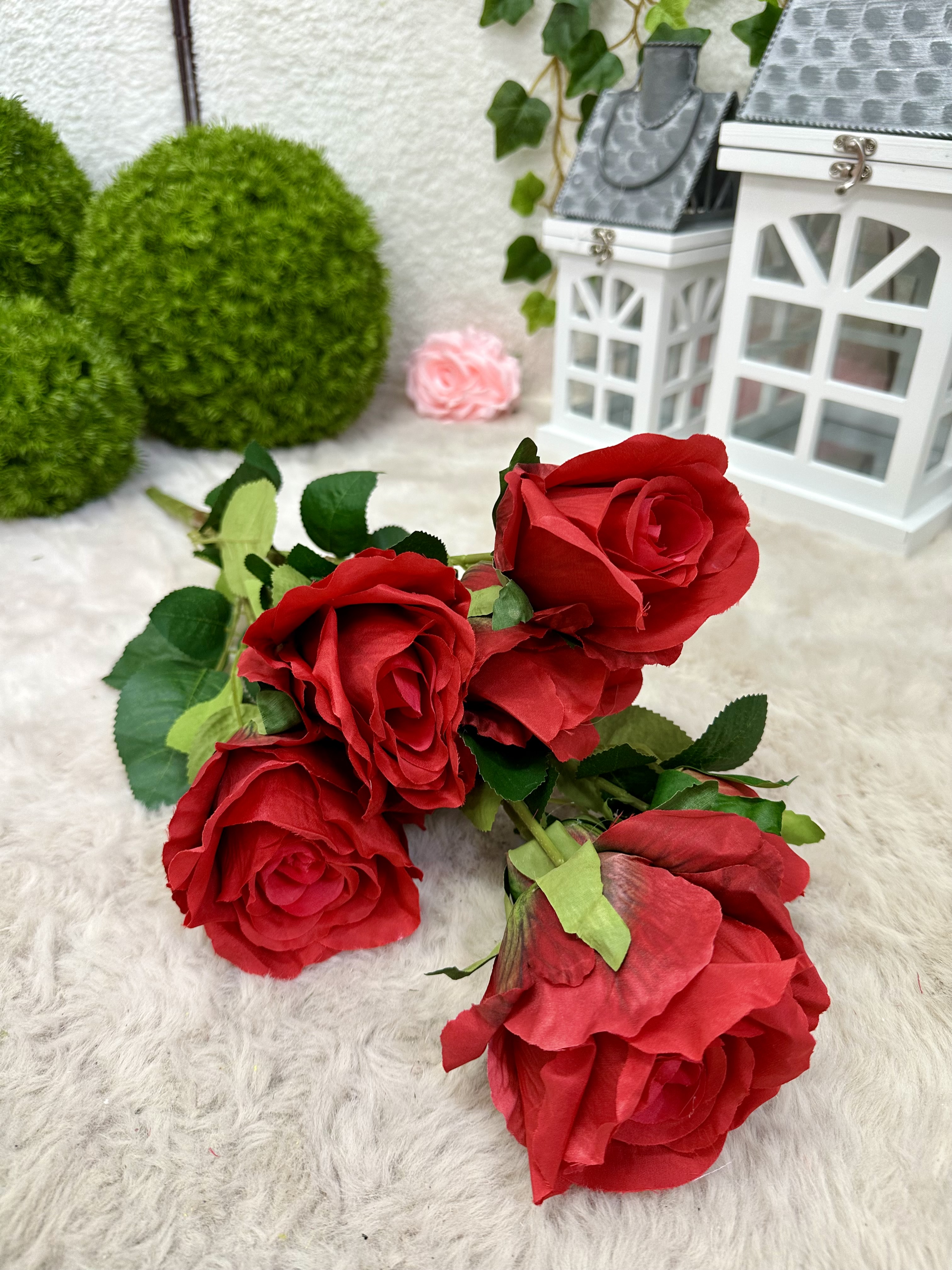 Sztuczna róża, która do złudzenia przypomina żywą.  Nawet po latach będzie wyglądała tak samo świeżo i pięknie. Kwiat można zginać i dowolnie dopasować. Bukiet z różąpięknie ozdobi każdy zakątek Twojego domu, umieść je w ulubionym wazonie i ciesz się ich pięknym urokiem.