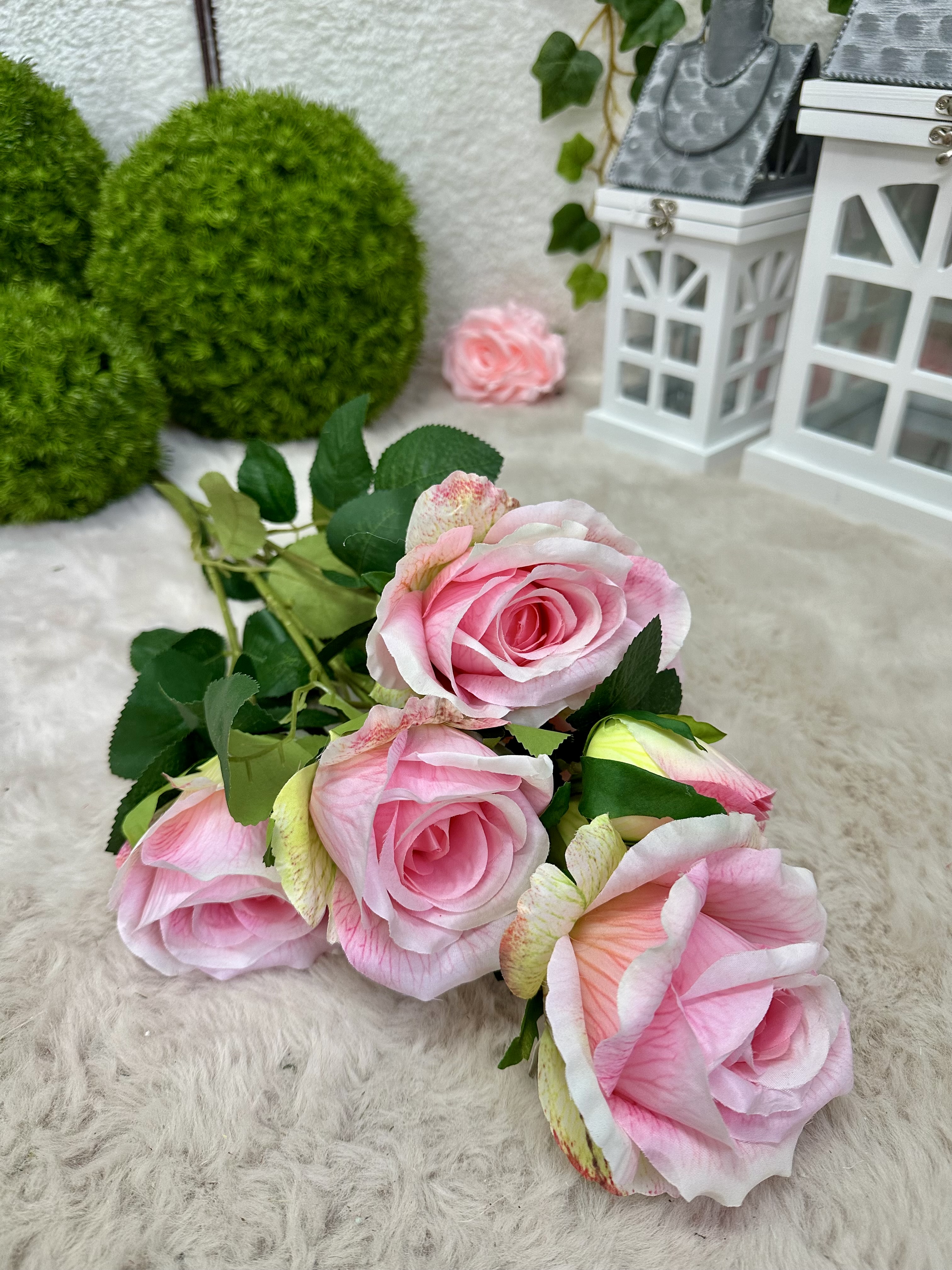 Sztuczna róża, która do złudzenia przypomina żywą. Nawet po latach będzie wyglądała tak samo świeżo i pięknie. Kwiat można zginać i dowolnie dopasować. Bukiet z różąpięknie ozdobi każdy zakątek Twojego domu, umieść je w ulubionym wazonie i ciesz się ich pięknym urokiem.
