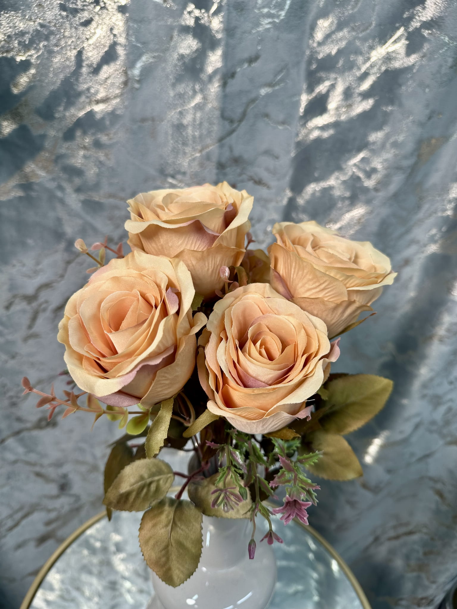 Sztuczna róża, która do złudzenia przypomina żywą. Nawet po latach będzie wyglądała tak samo świeżo i pięknie. Kwiat można zginać i dowolnie dopasować. Bukiet z różami pięknie ozdobi każdy zakątek Twojego domu, umieść je w ulubionym wazonie i ciesz się ich pięknym urokiem.