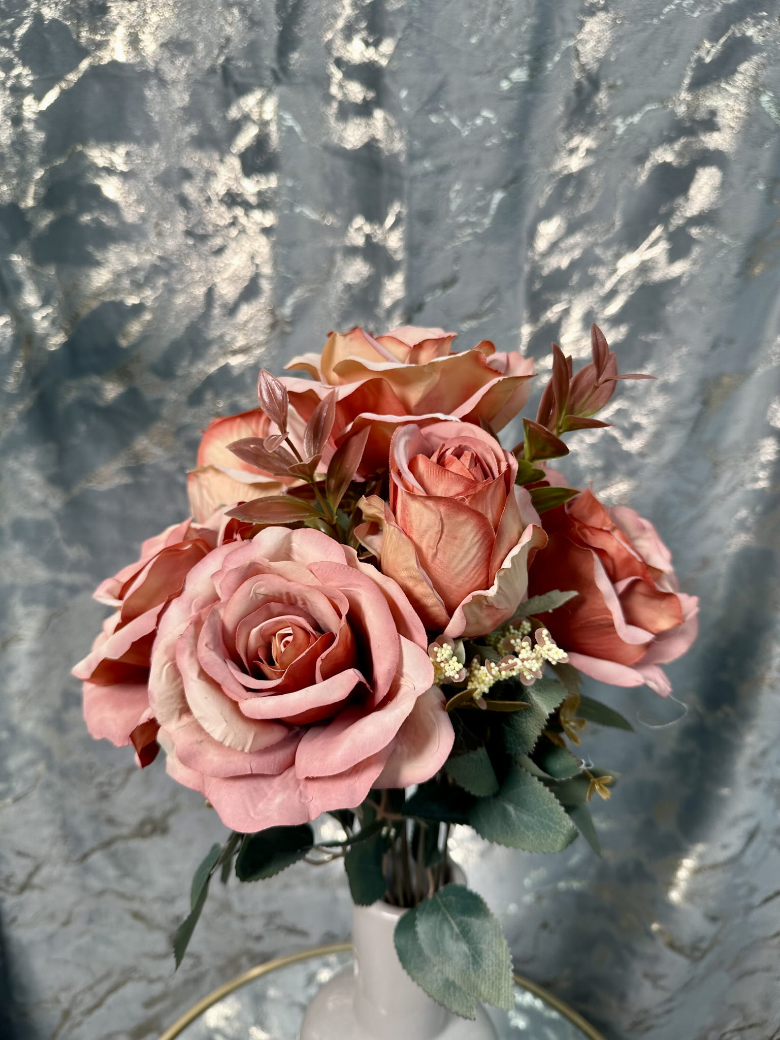 Sztuczna róża, która do złudzenia przypomina żywą. Nawet po latach będzie wyglądała tak samo świeżo i pięknie. Kwiat można zginać i dowolnie dopasować. Bukiet z różami pięknie ozdobi każdy zakątek Twojego domu, umieść je w ulubionym wazonie i ciesz się ich pięknym urokiem.