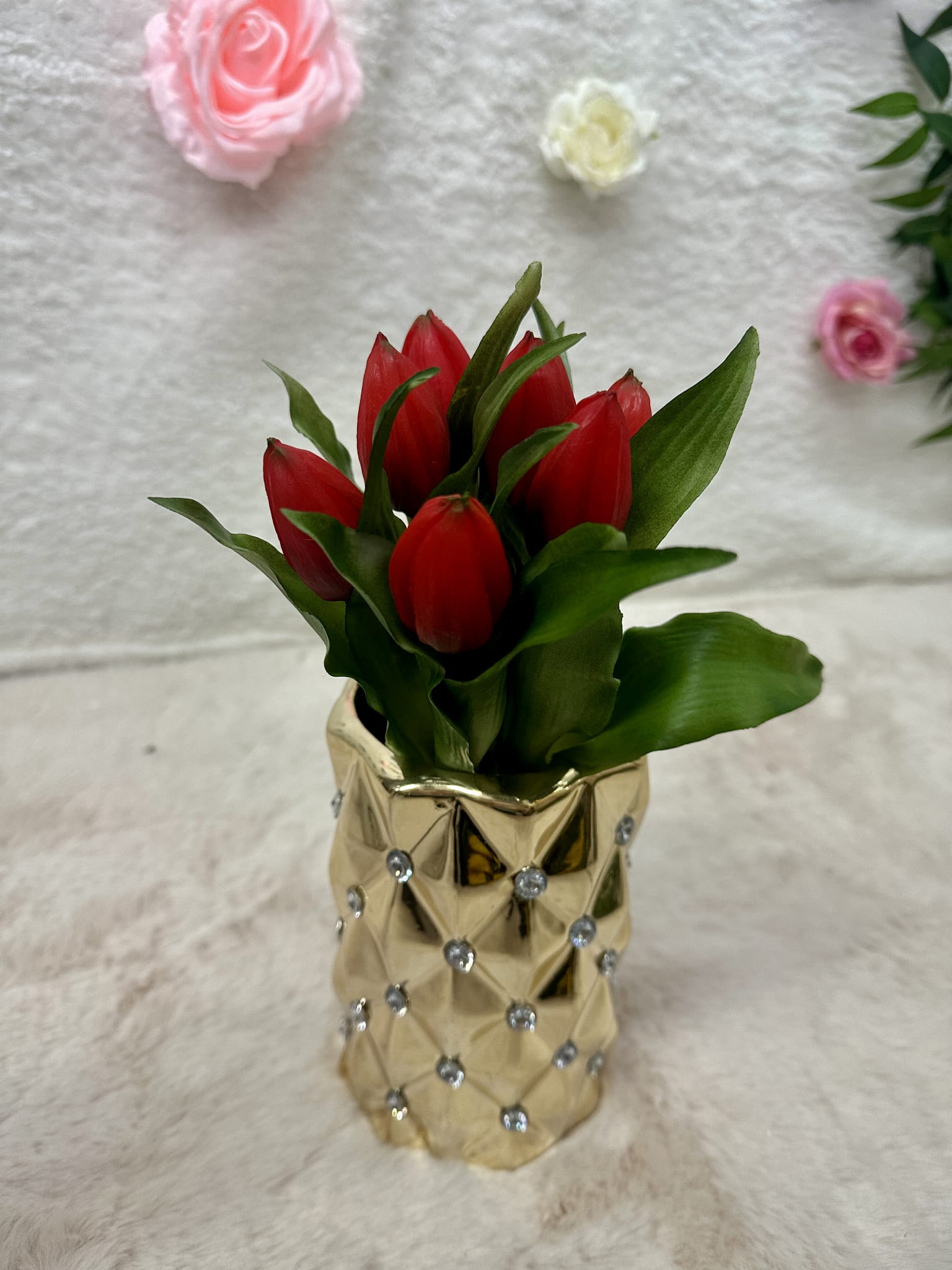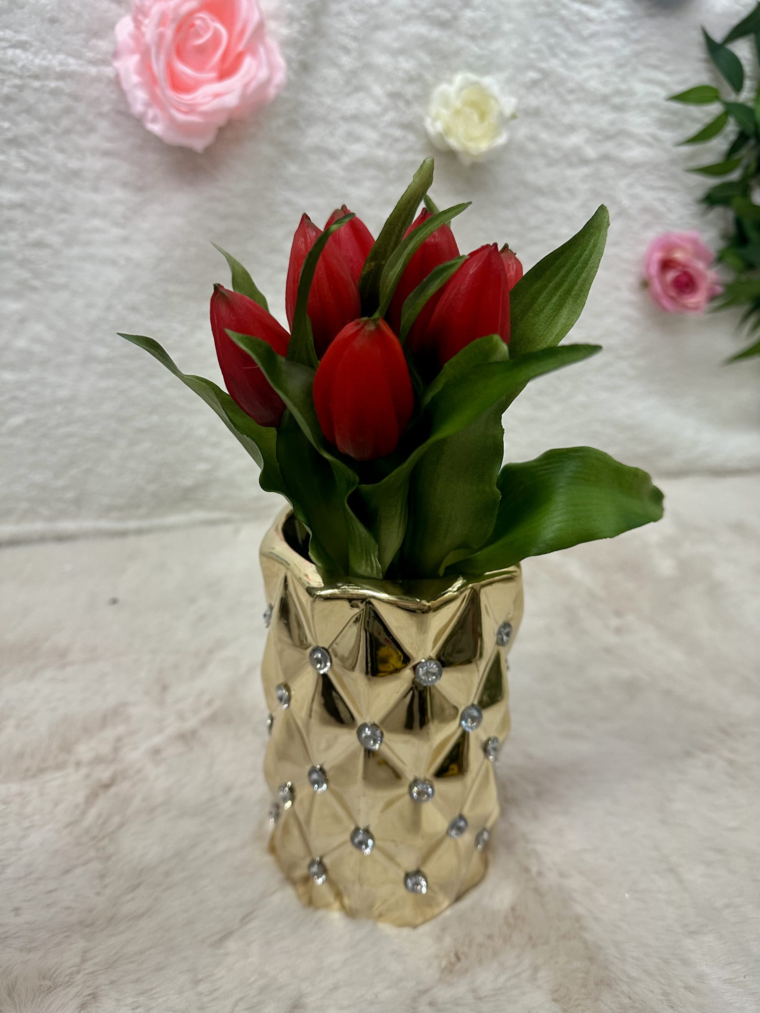 Tulipany to jedne z niemal "obowiązkowych" wiosennych kwiatów, które warto mieć w swoim domu. Kwiaty ożywią i wprowadzą świeżość do każdego pomieszczenia. Tulipany gumowe wyglądają jak żywe, przyciągają wzrok każdego. Zaproś je do swojego domu i ciesz się pięknymi kwiatami przez cały rok.