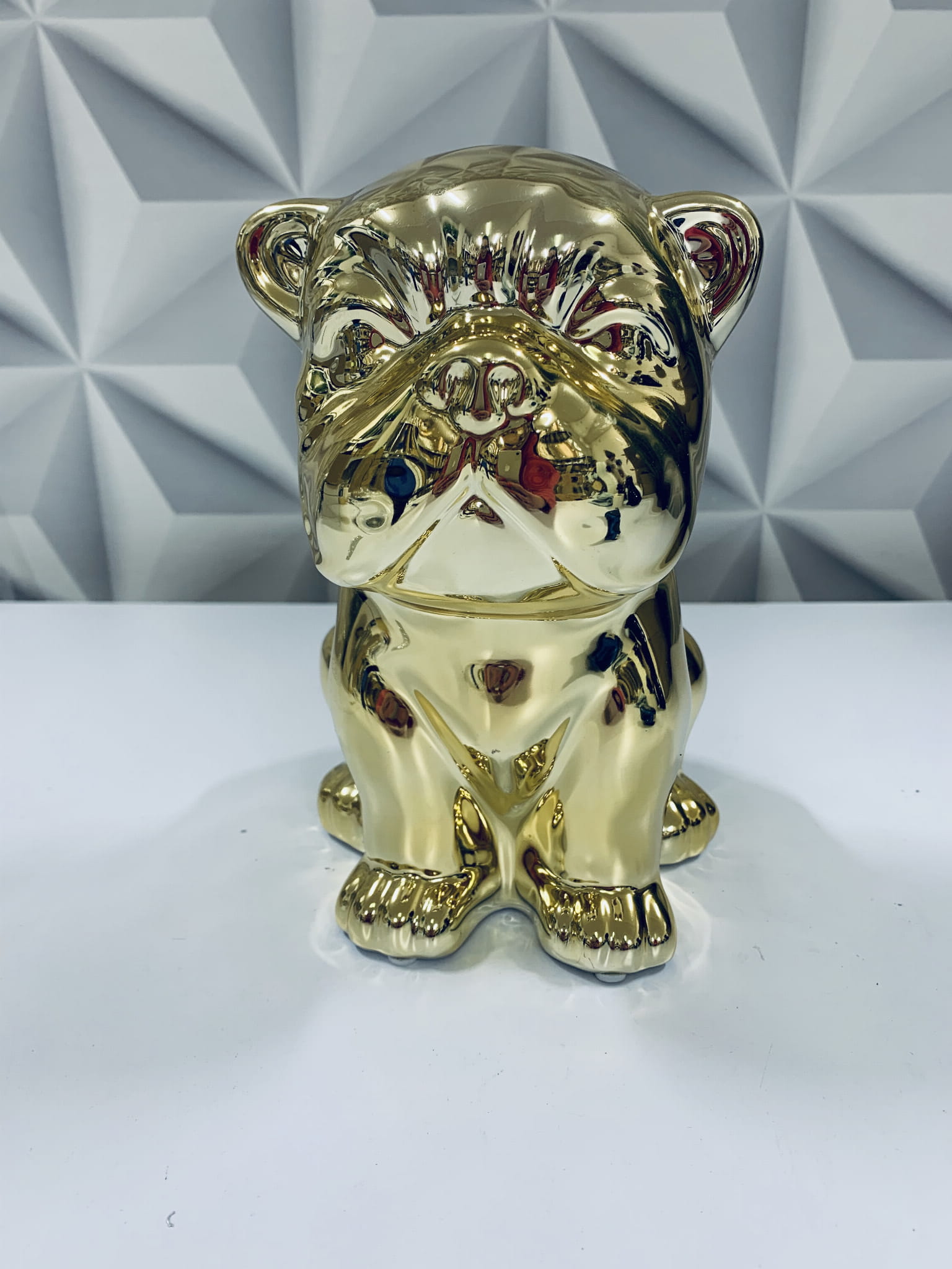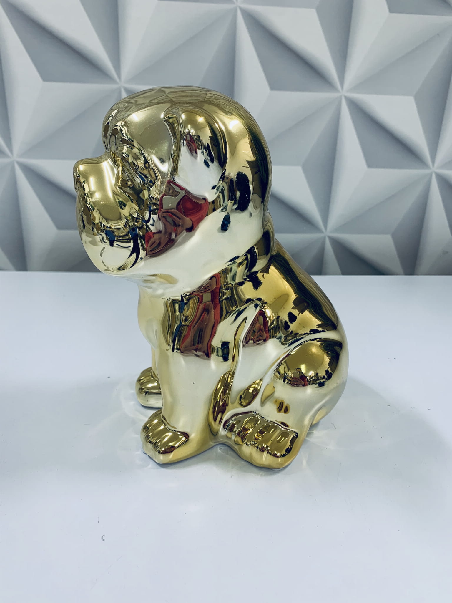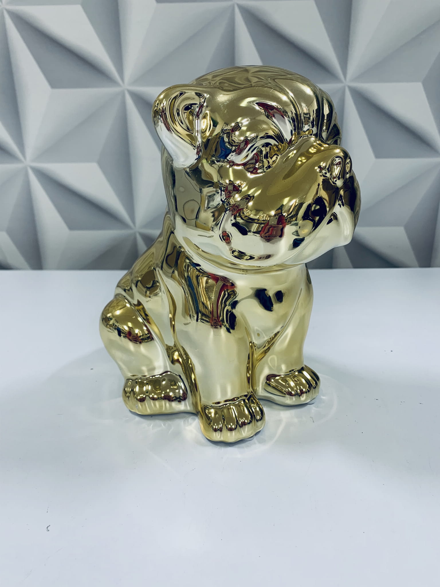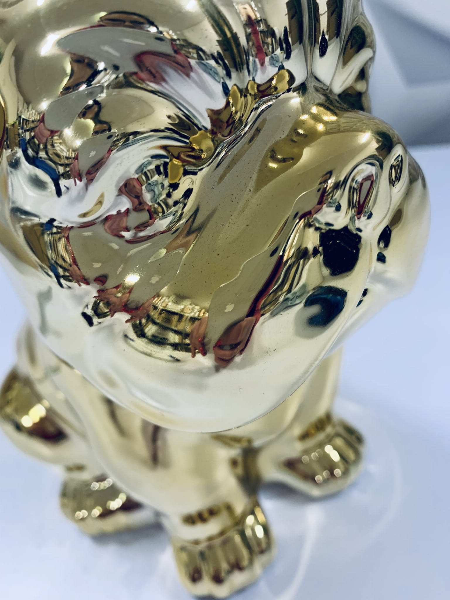 Piesek złoty to znakomita ozdoba, która uzupełni każdą aranżacje. Modna i nowoczesna figurka dekoracyjna do domu. Stabilna i efektowna.
