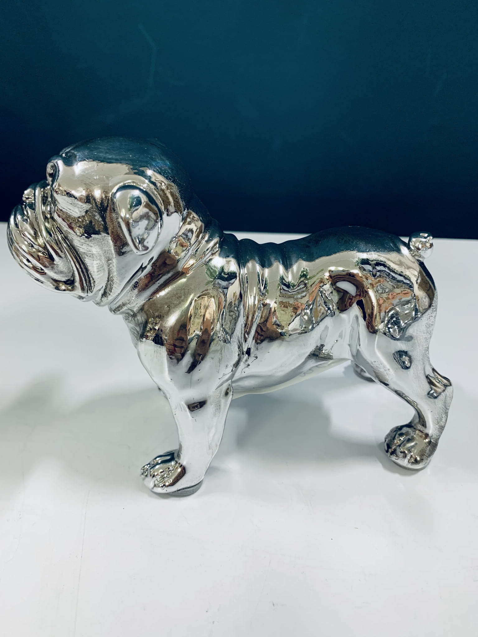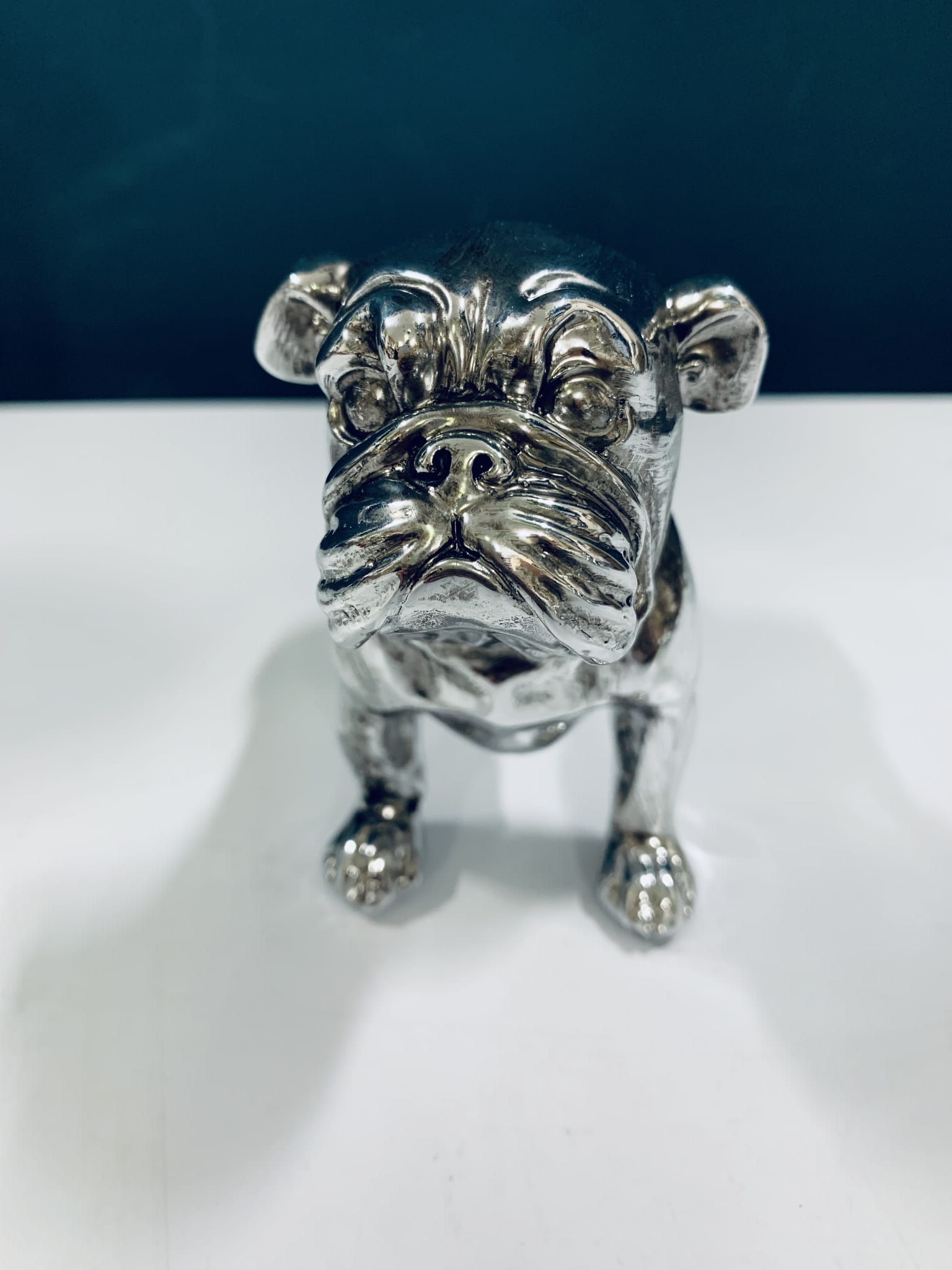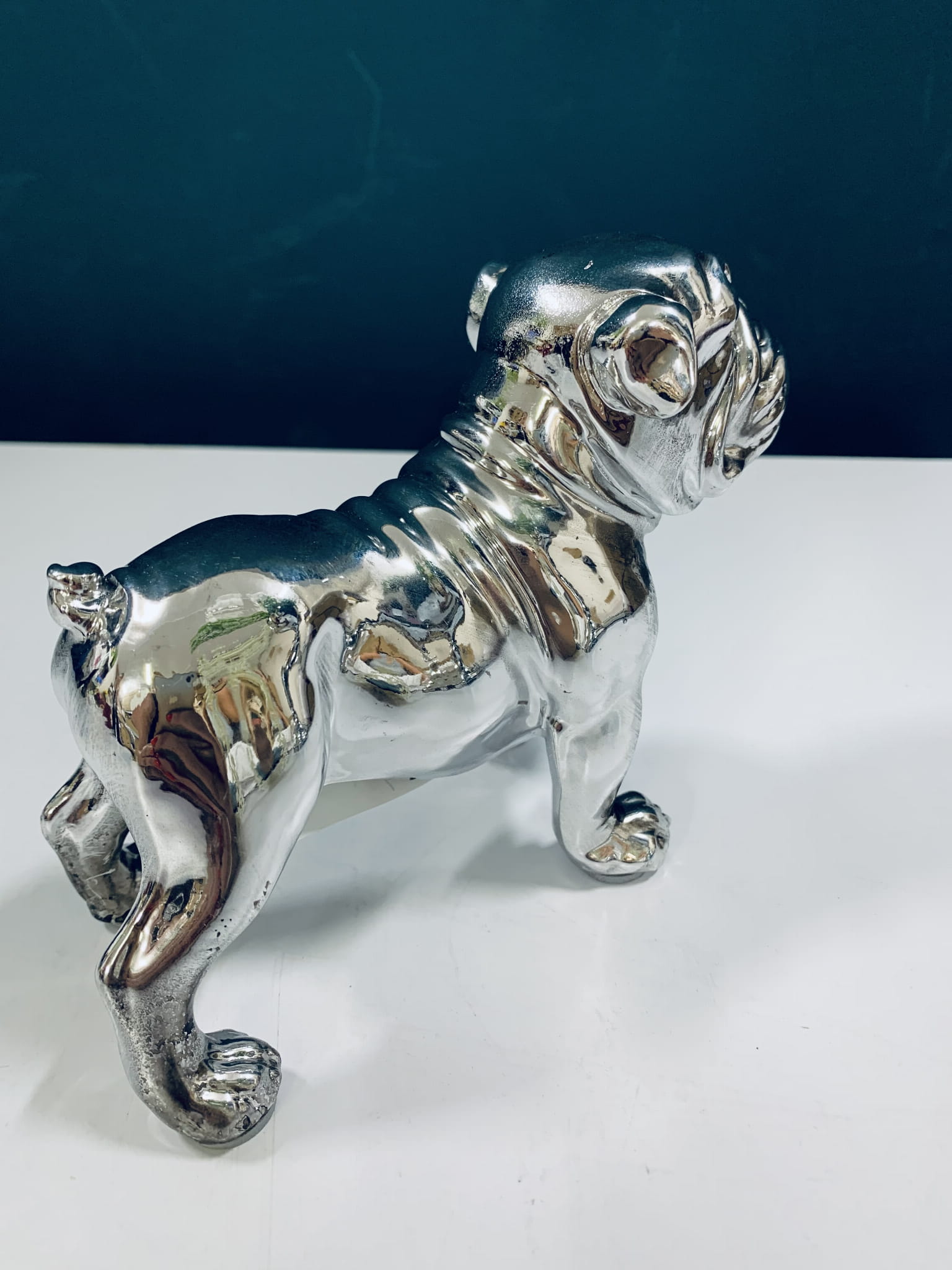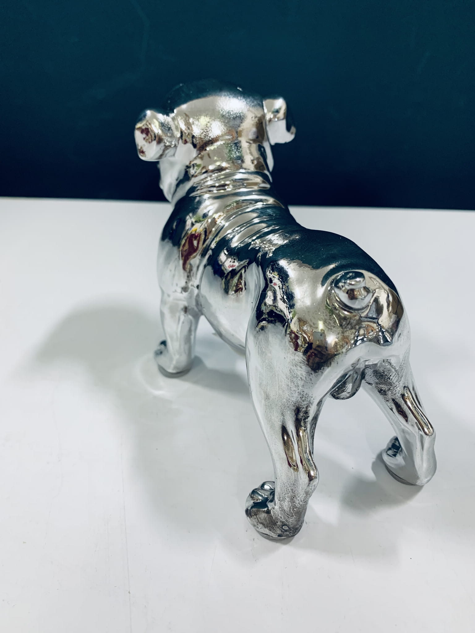Piesek srebrny to znakomita ozdoba, która uzupełni każdą aranżacje. Modna i nowoczesna figurka dekoracyjna do domu. Stabilna i efektowna.