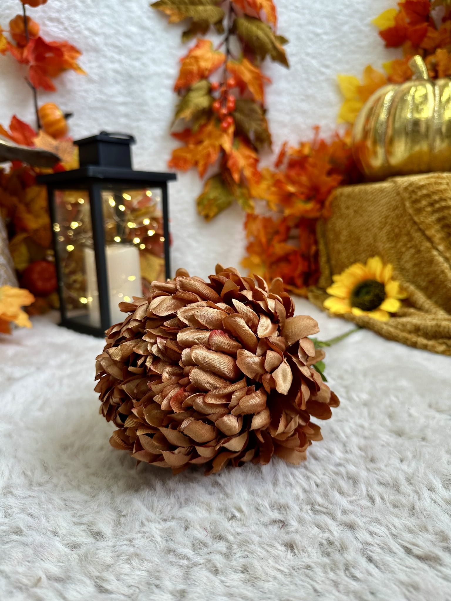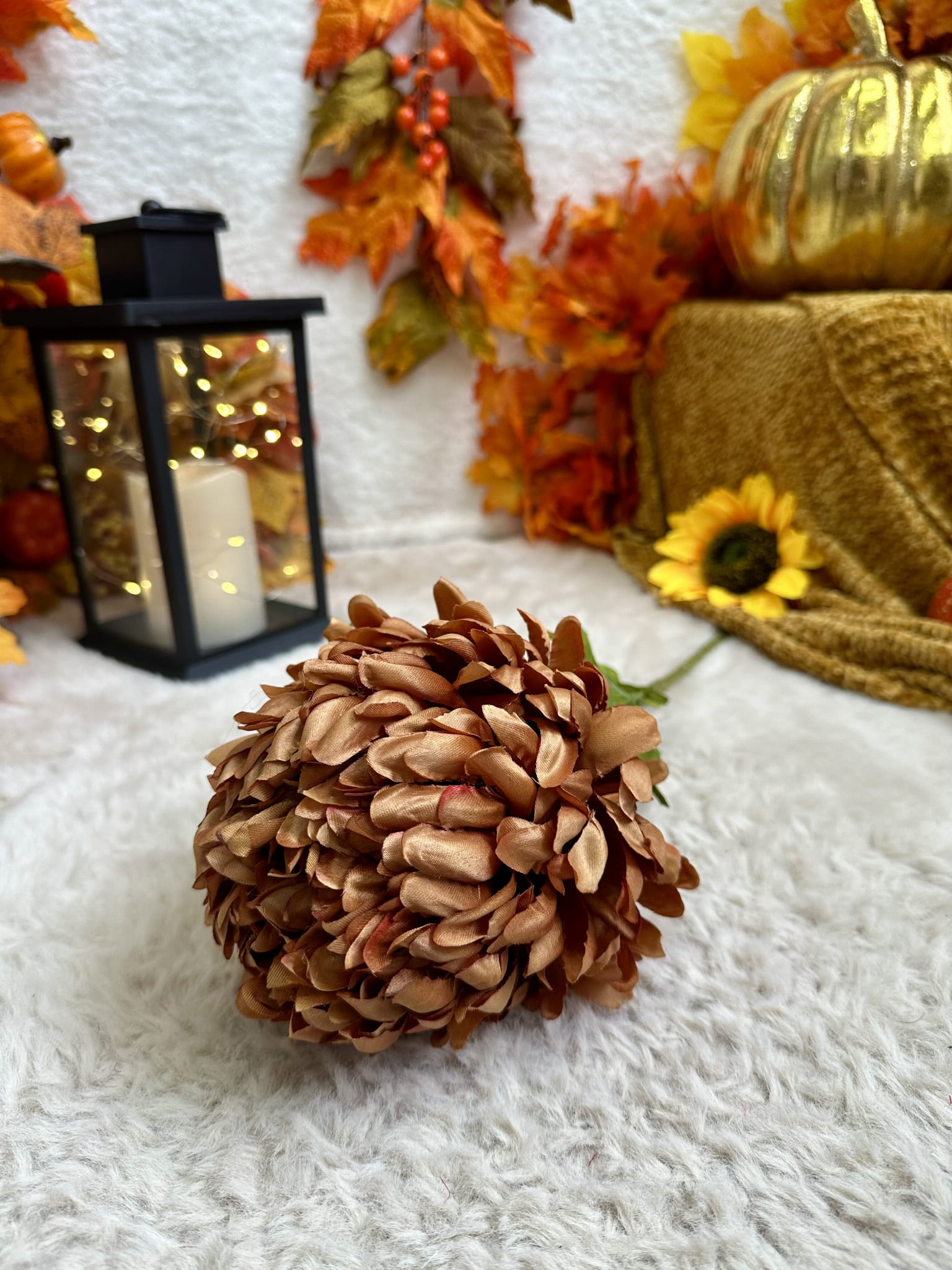 Sztuczna chryzantema, która do złudzenia przypomina żywą.  Nawet po latach będzie wyglądała tak samo świeżo i pięknie. Kwiat można zginać i dowolnie dopasować.
