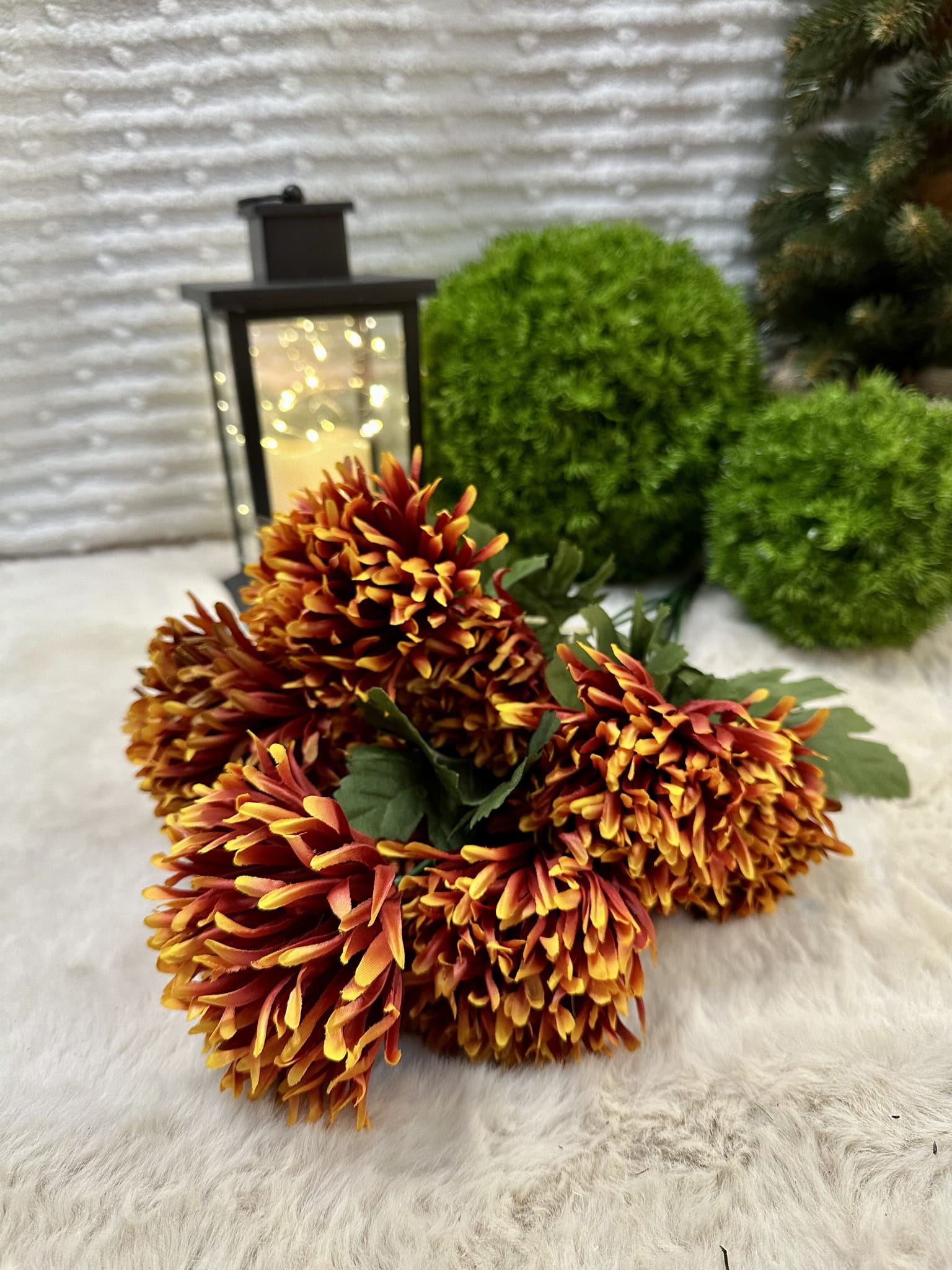 Sztuczna chryzantema, która do złudzenia przypomina żywą.  Nawet po latach będzie wyglądała tak samo świeżo i pięknie. Kwiat można zginać i dowolnie dopasować.