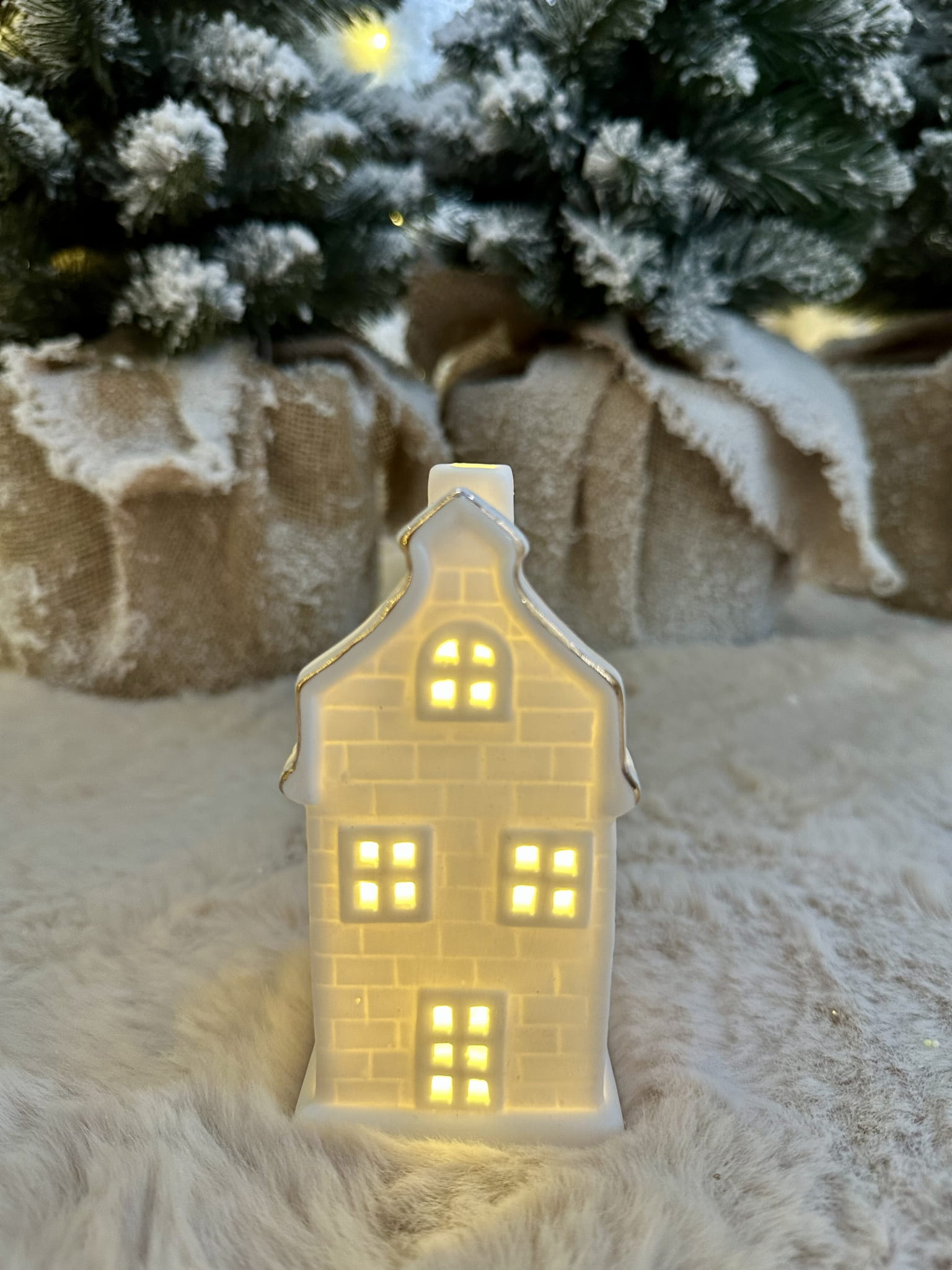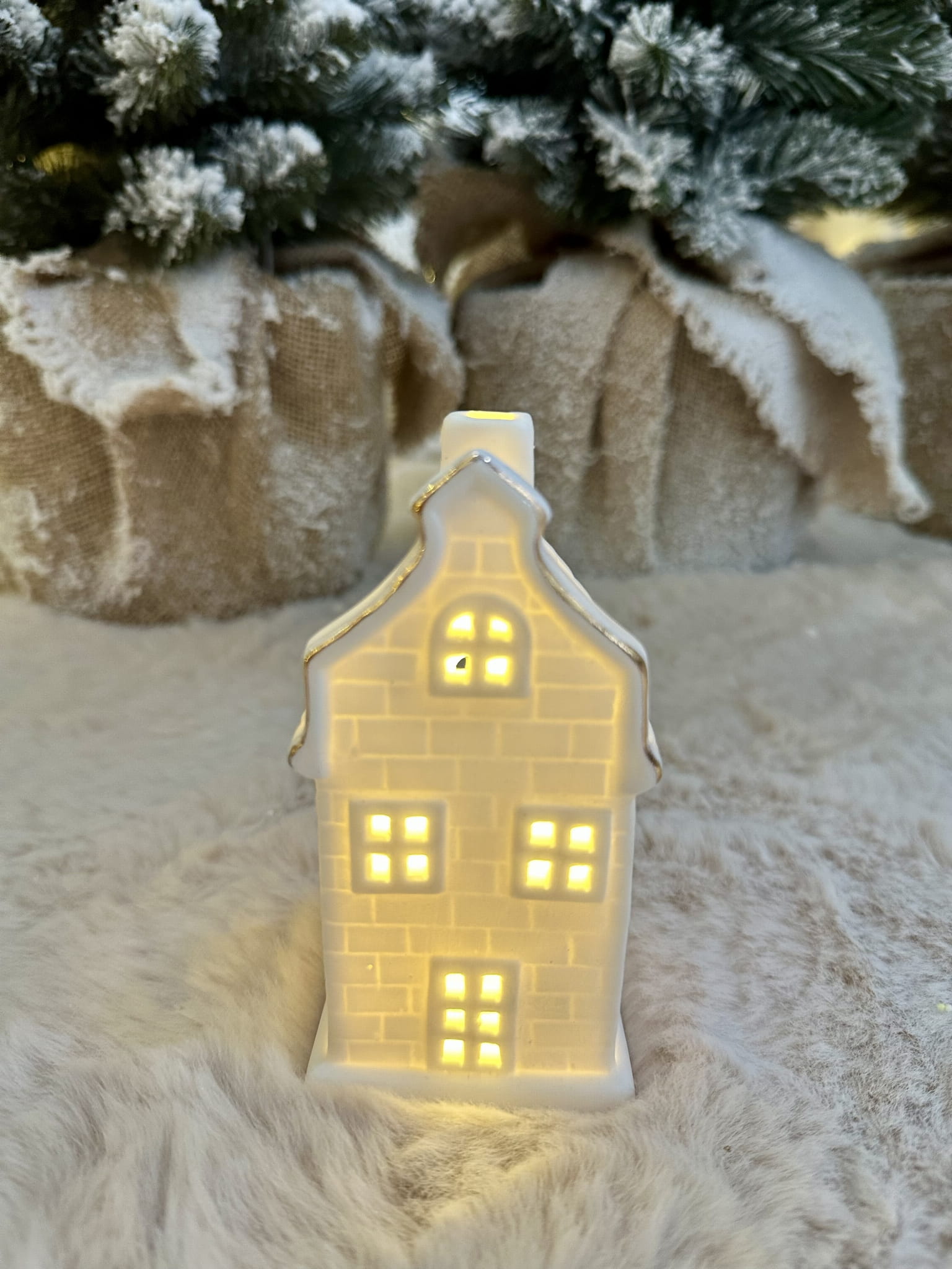 Sliczny domek podświetlany ciepłym światłem LED, wprowadza niesamowicie klimatyczną atmosferę do każdego pomieszczenia w którym zagości. Domek zasilany na baterie..