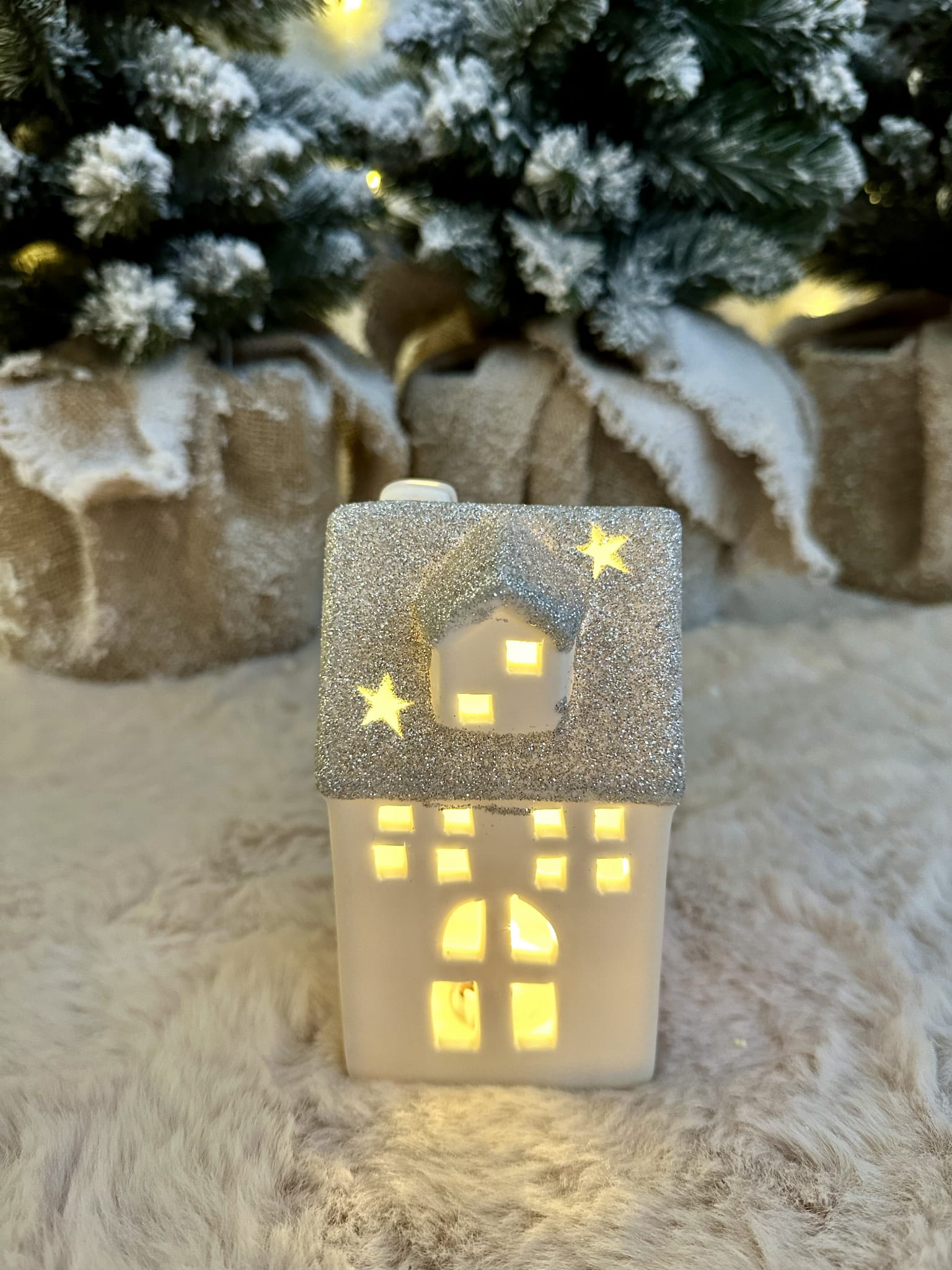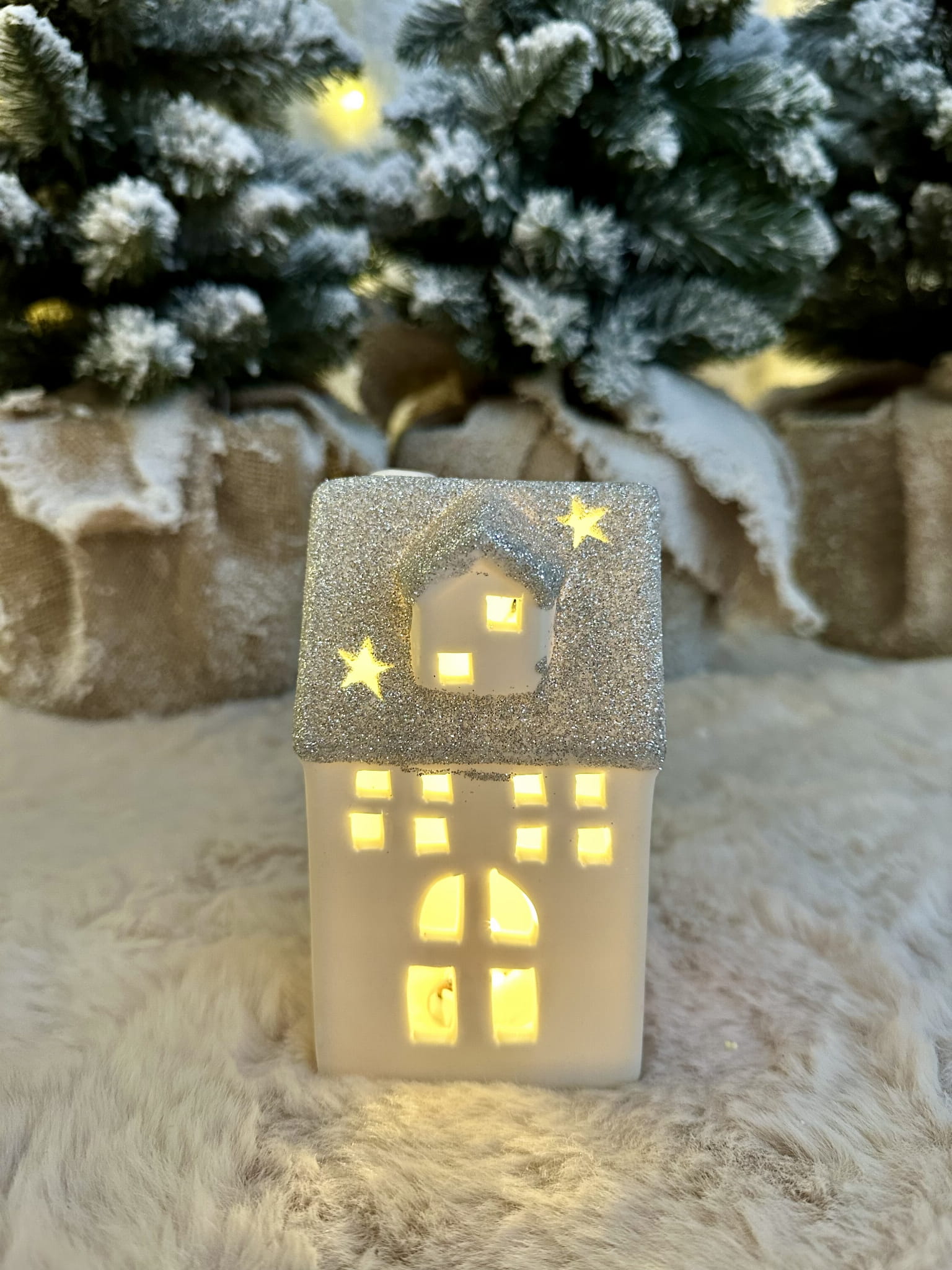 Sliczny domek podświetlany ciepłym światłem LED, wprowadza niesamowicie klimatyczną atmosferę do każdego pomieszczenia w którym zagości. Domek zasilany na baterie..
