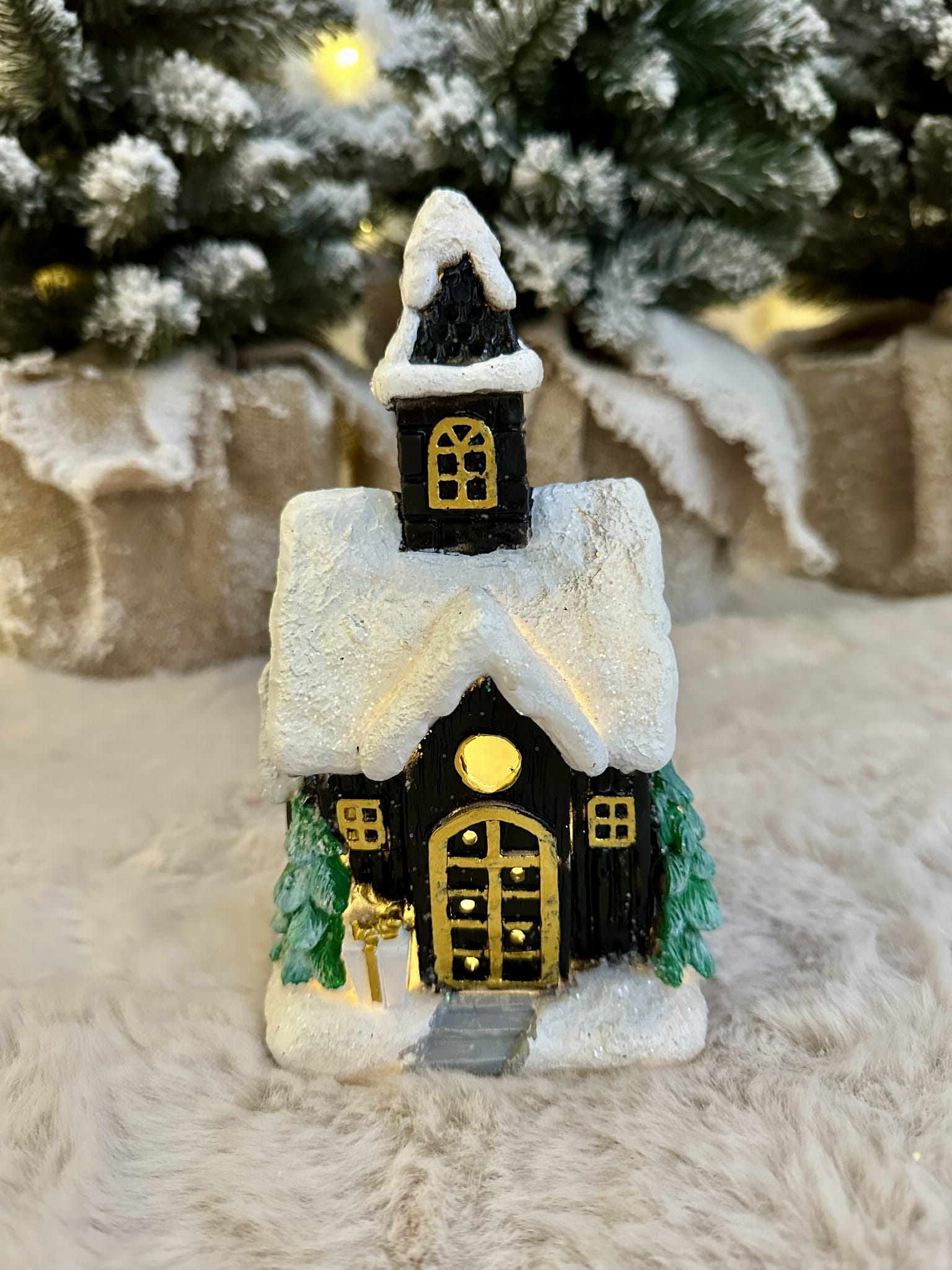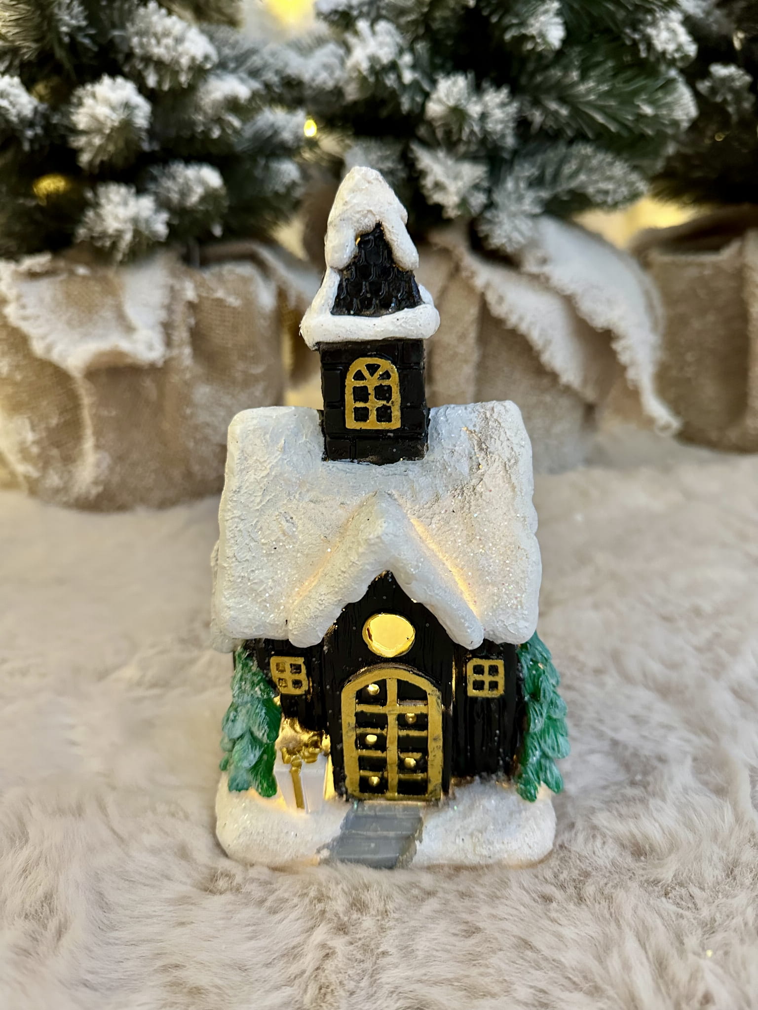 Sliczny domek podświetlany ciepłym światłem LED, wprowadza niesamowicie klimatyczną atmosferę do każdego pomieszczenia w którym zagości. Domek zasilany na baterie..
