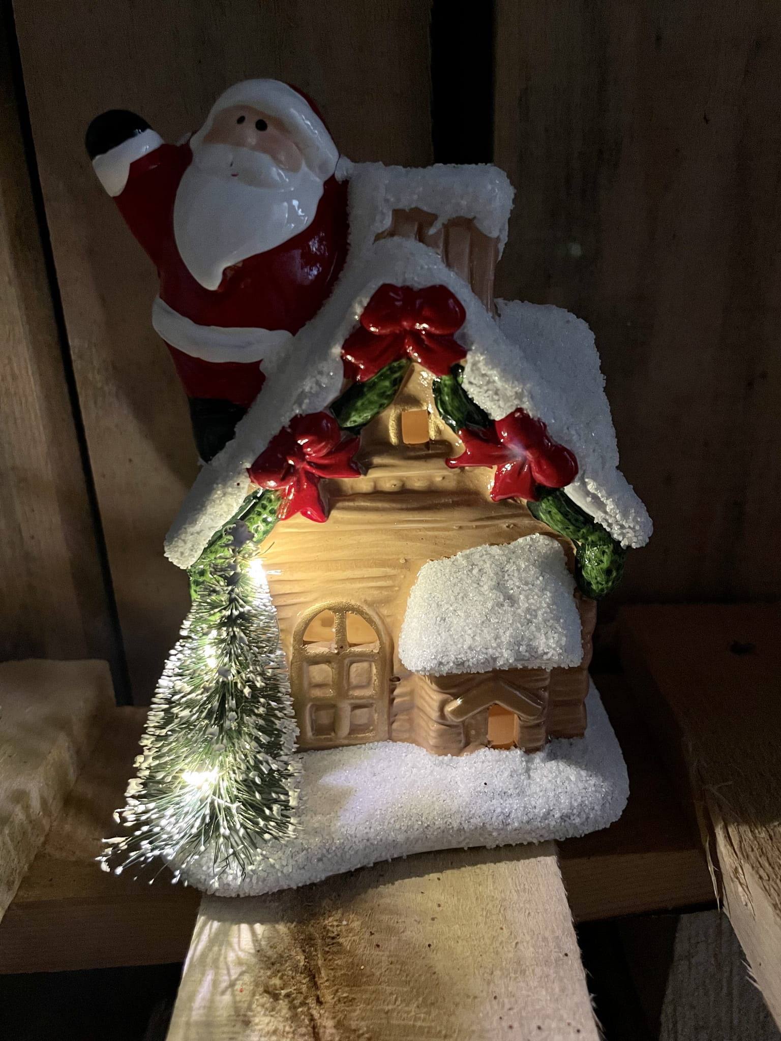 Sliczny domek podświetlany ciepłym światłem LED, wprowadza niesamowicie klimatyczną atmosferę do każdego pomieszczenia w którym zagości. Domek zasilany na baterie..