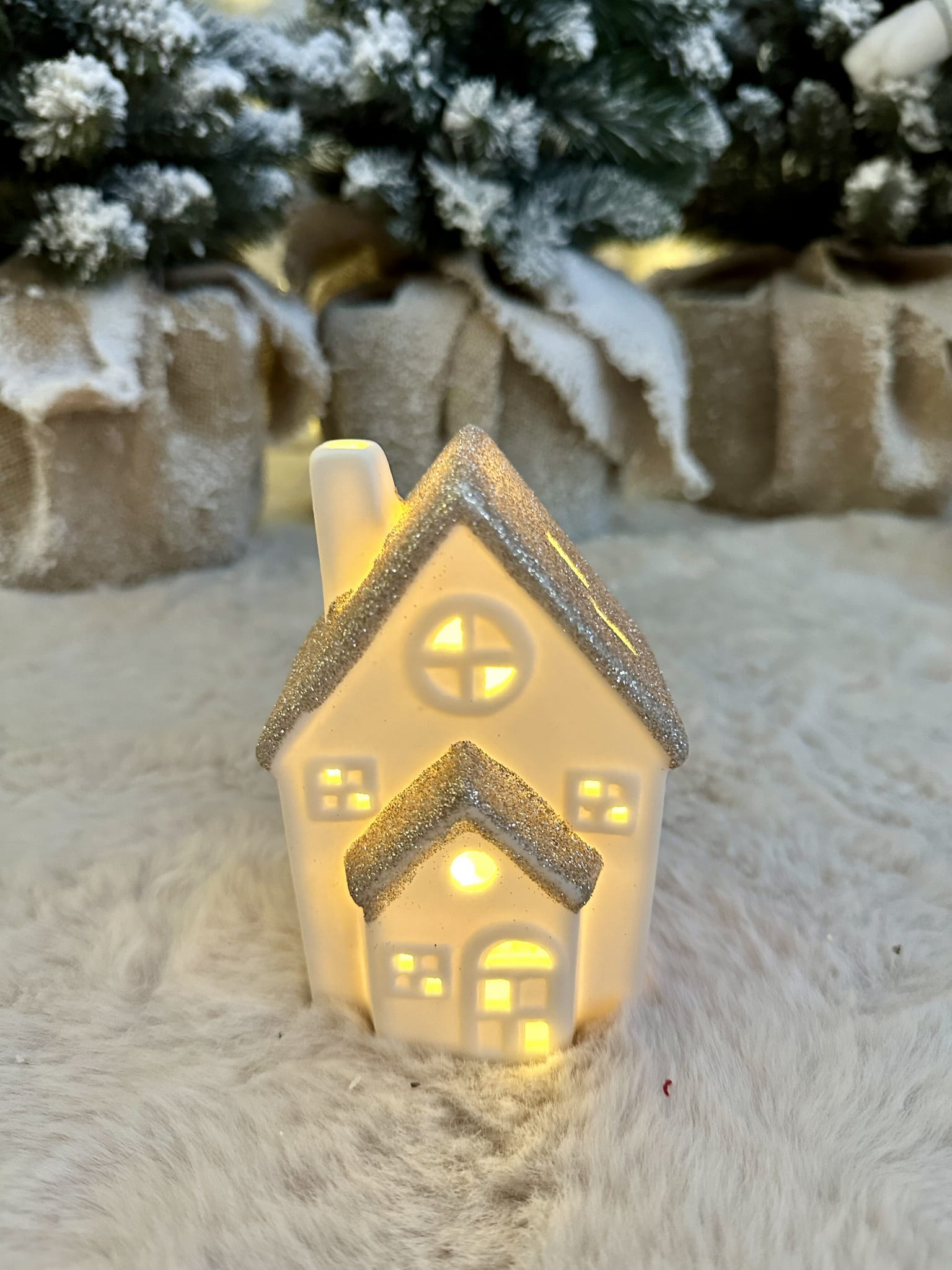 Sliczny domek podświetlany ciepłym światłem LED, wprowadza niesamowicie klimatyczną atmosferę do każdego pomieszczenia w którym zagości. Domek zasilany na baterie..