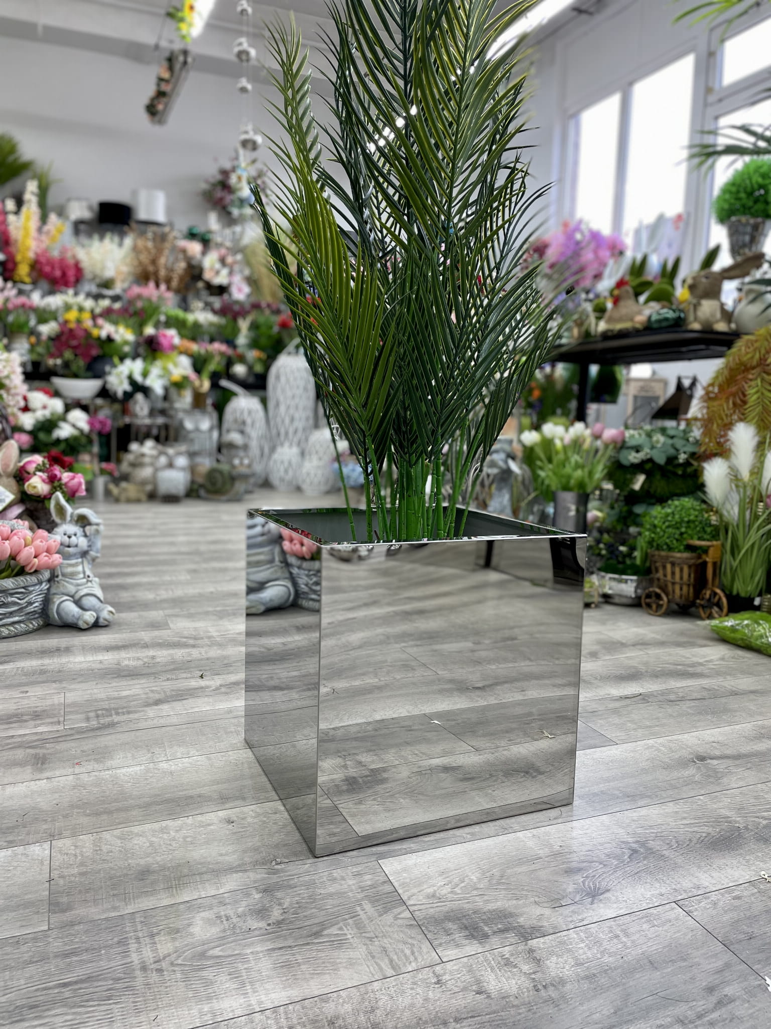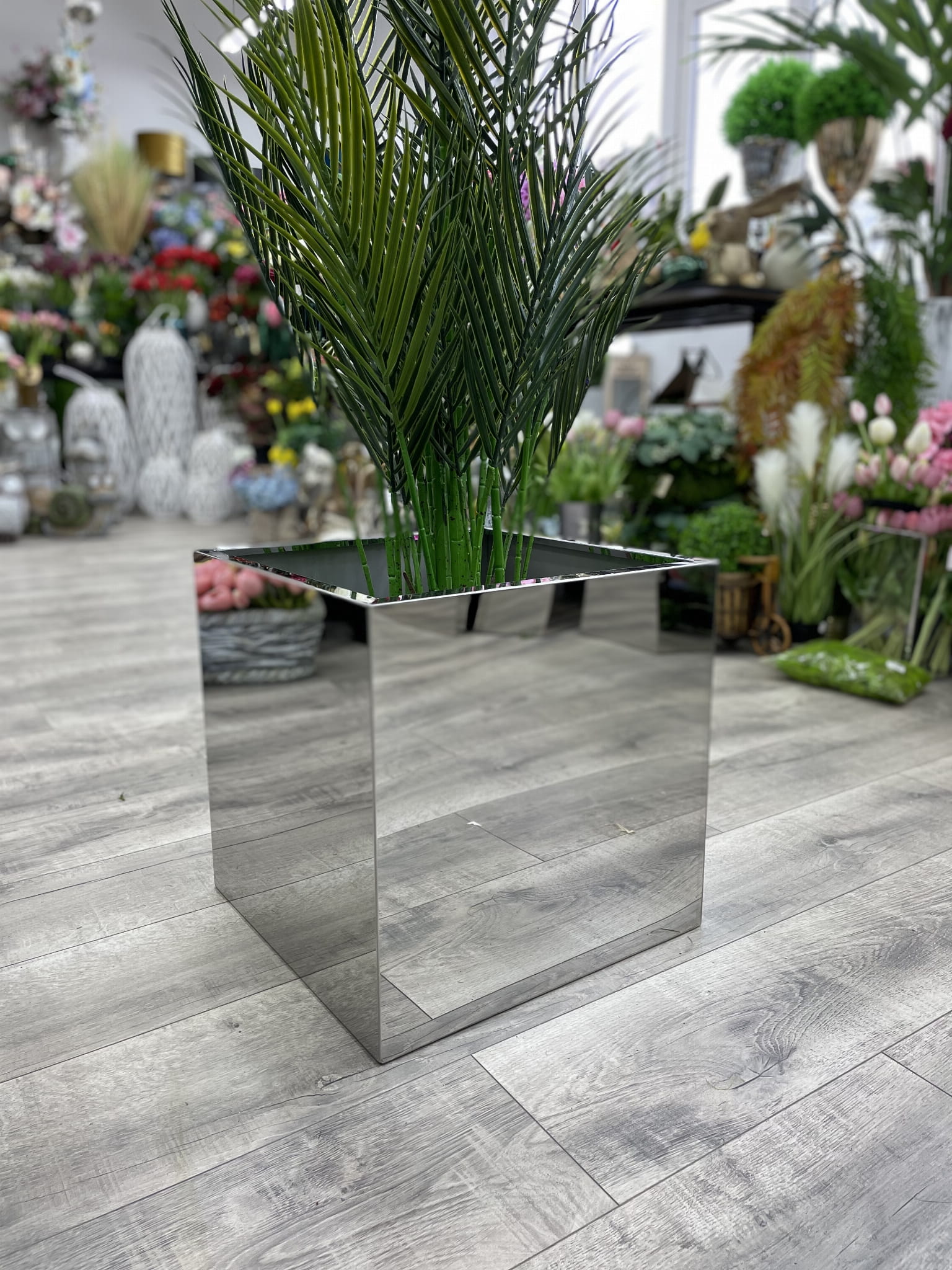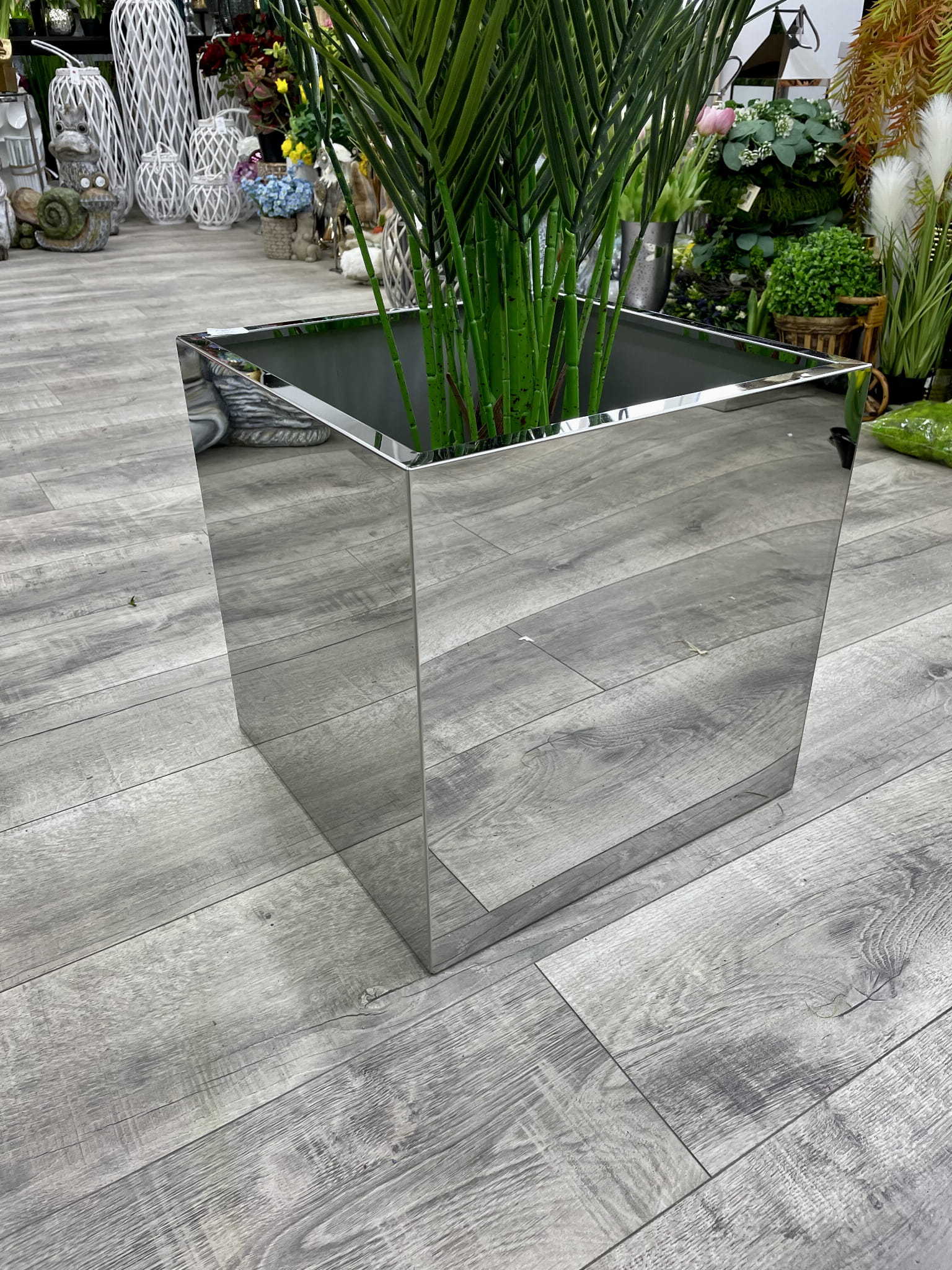 Donica lustrzana to niezwykle efektowna dekoracja. Jej forma doskonale pasuje do nowoczesnych wnętrz. Donica ze stali nierdzewnej jest odporna na warunki atmosferyczne. Z powodzeniem można postawić ją zarówno w domu jak i na balkonie, w ogrodzie czy na tarasie. Donica posiada także odwodnienie dzięki czemu nadaje się idealnie także dla roślin żywych drzewek i krzewów.