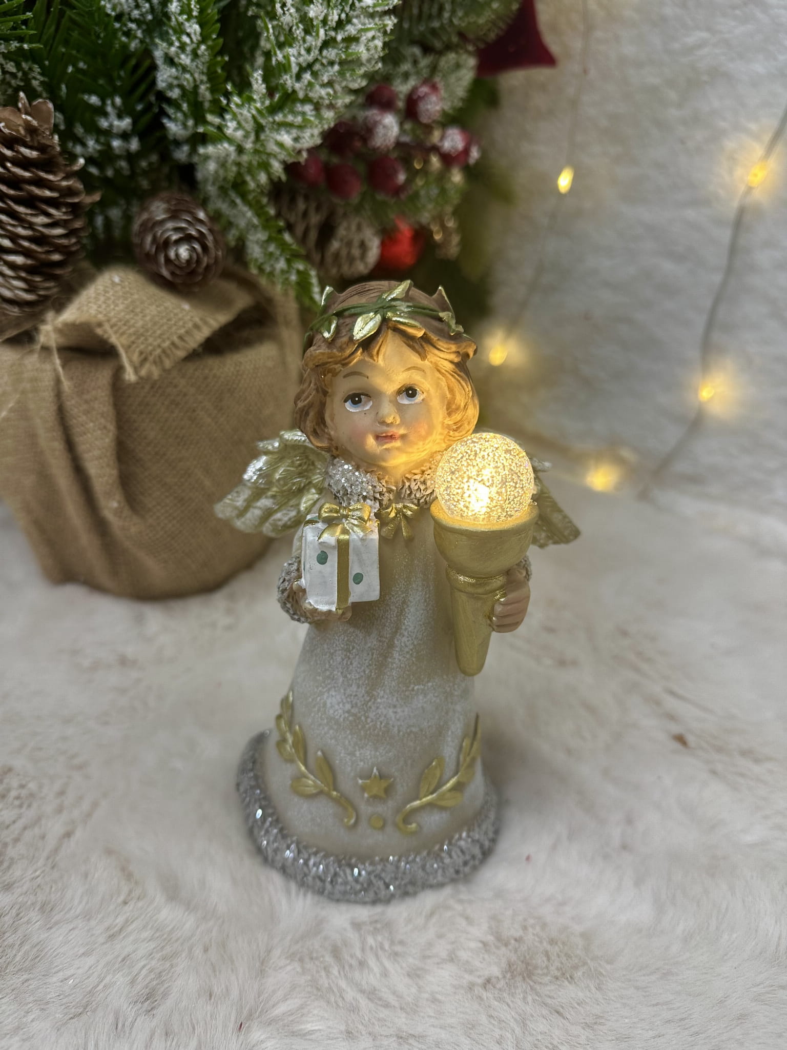 Aniołek siedzący z kulą led