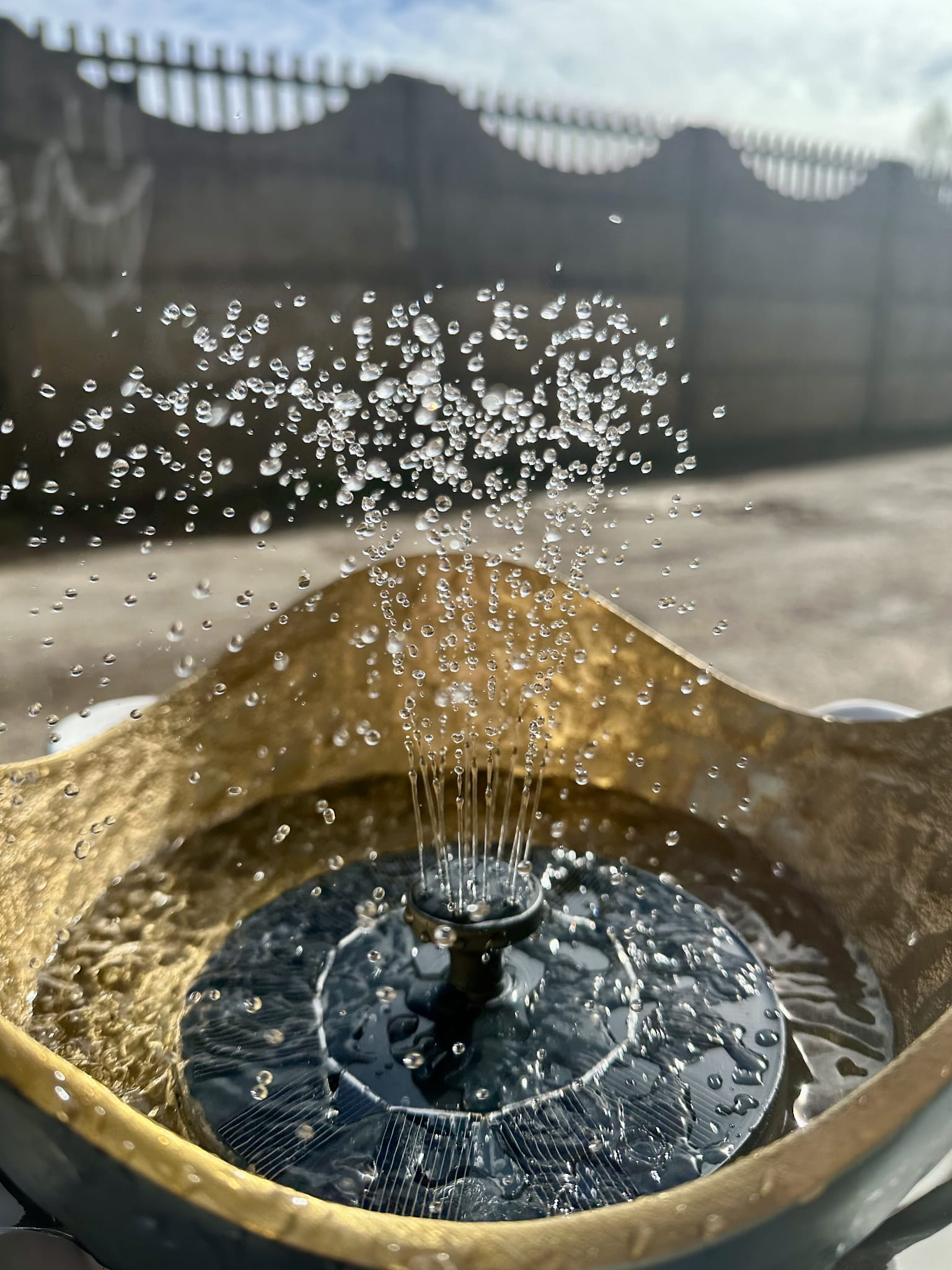 Fontanna do oczek wodnych do ogrodu. Fontanna posiada wbudowaną pompę, która zadba o czystość oczka ale umieszczona w donicy może być automatyczną konewką.