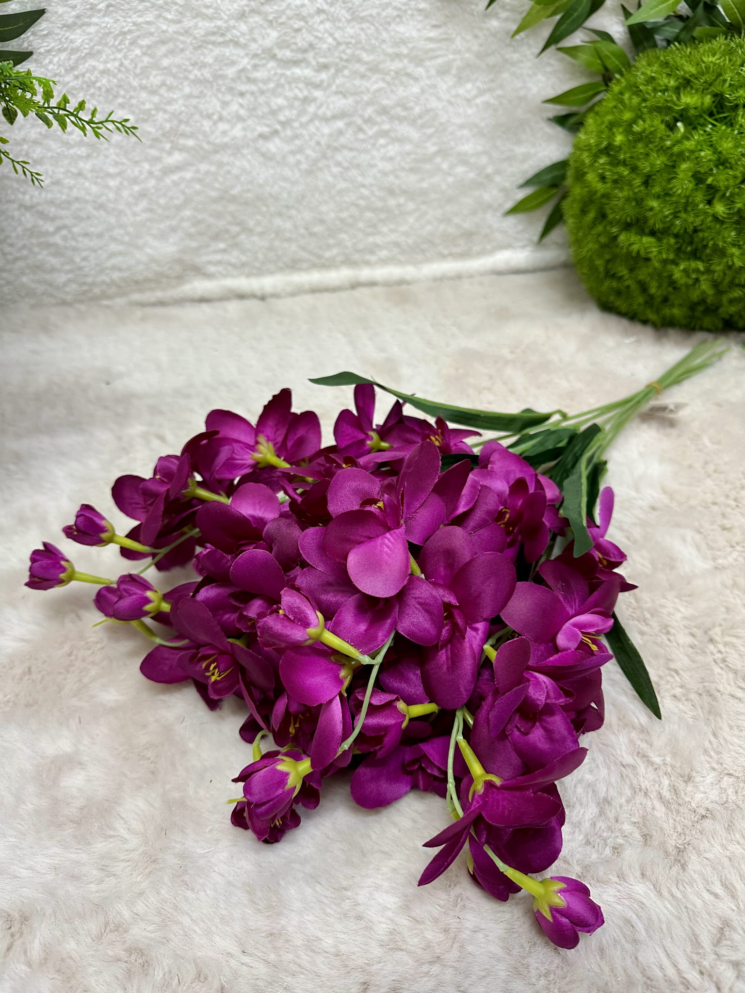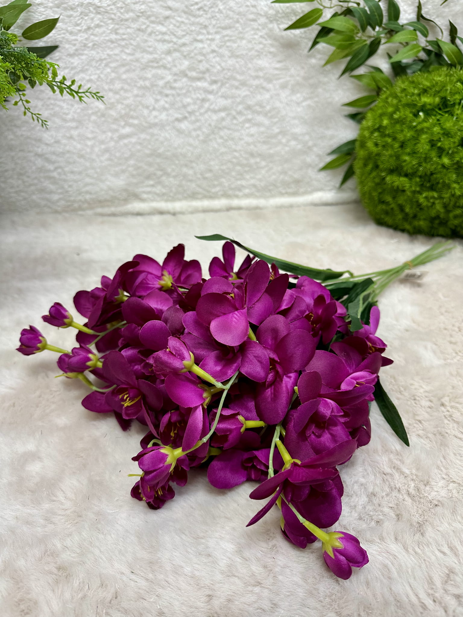 Bukiet frezji idealnie odzwierciedla realne kwiaty. Dzięki pokryciu silikonem kwiaty wyglądają jak żywe. Bukiet jest dość pokaźny także nawet jeden wystarczy, aby stworzyc piękną kompozycję.