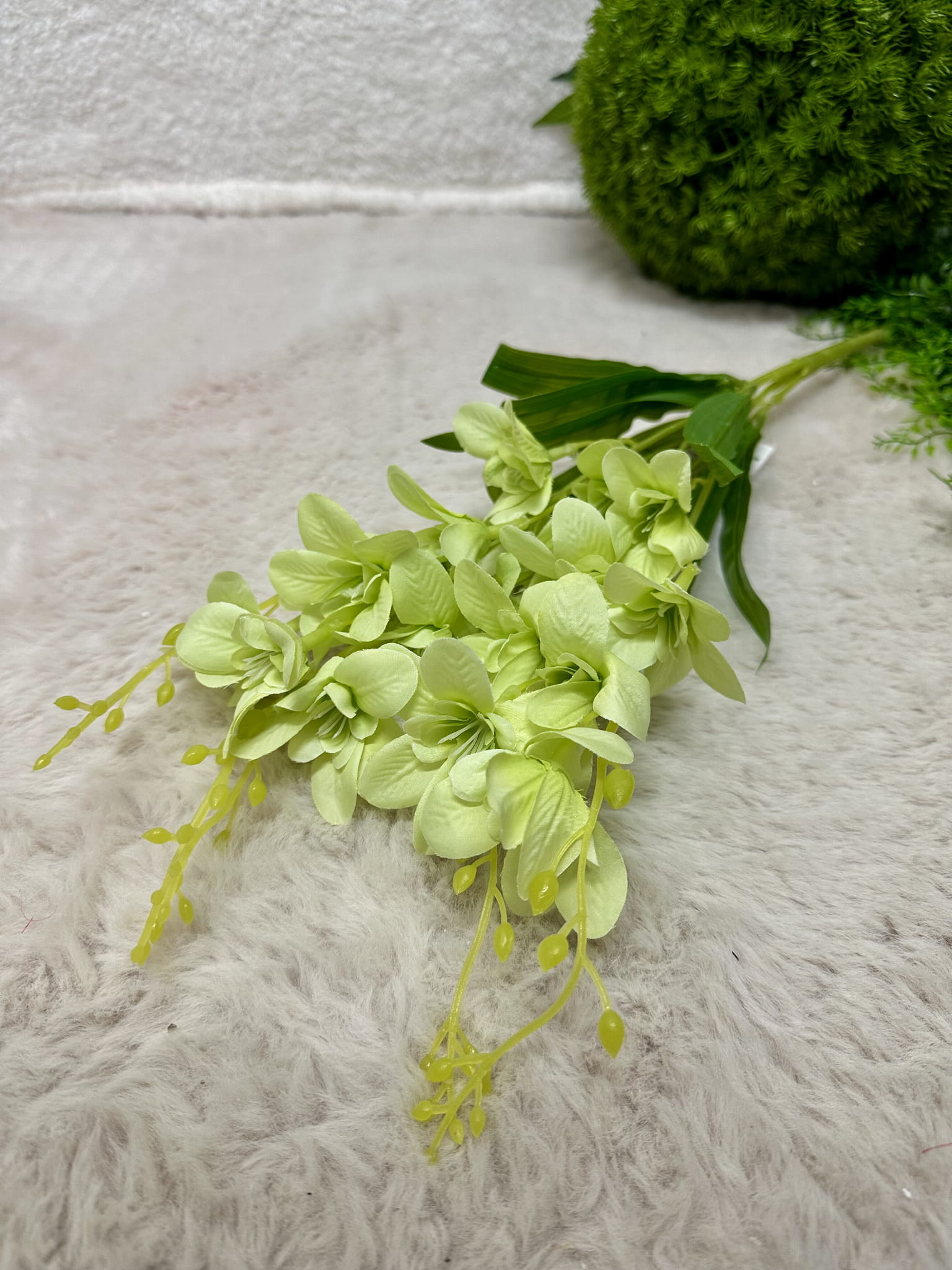 Bukiet frezji idealnie odzwierciedla realne kwiaty. Dzięki pokryciu silikonem kwiaty wyglądają jak żywe. Bukiet jest dość pokaźny także nawet jeden wystarczy, aby stworzyc piękną kompozycję.