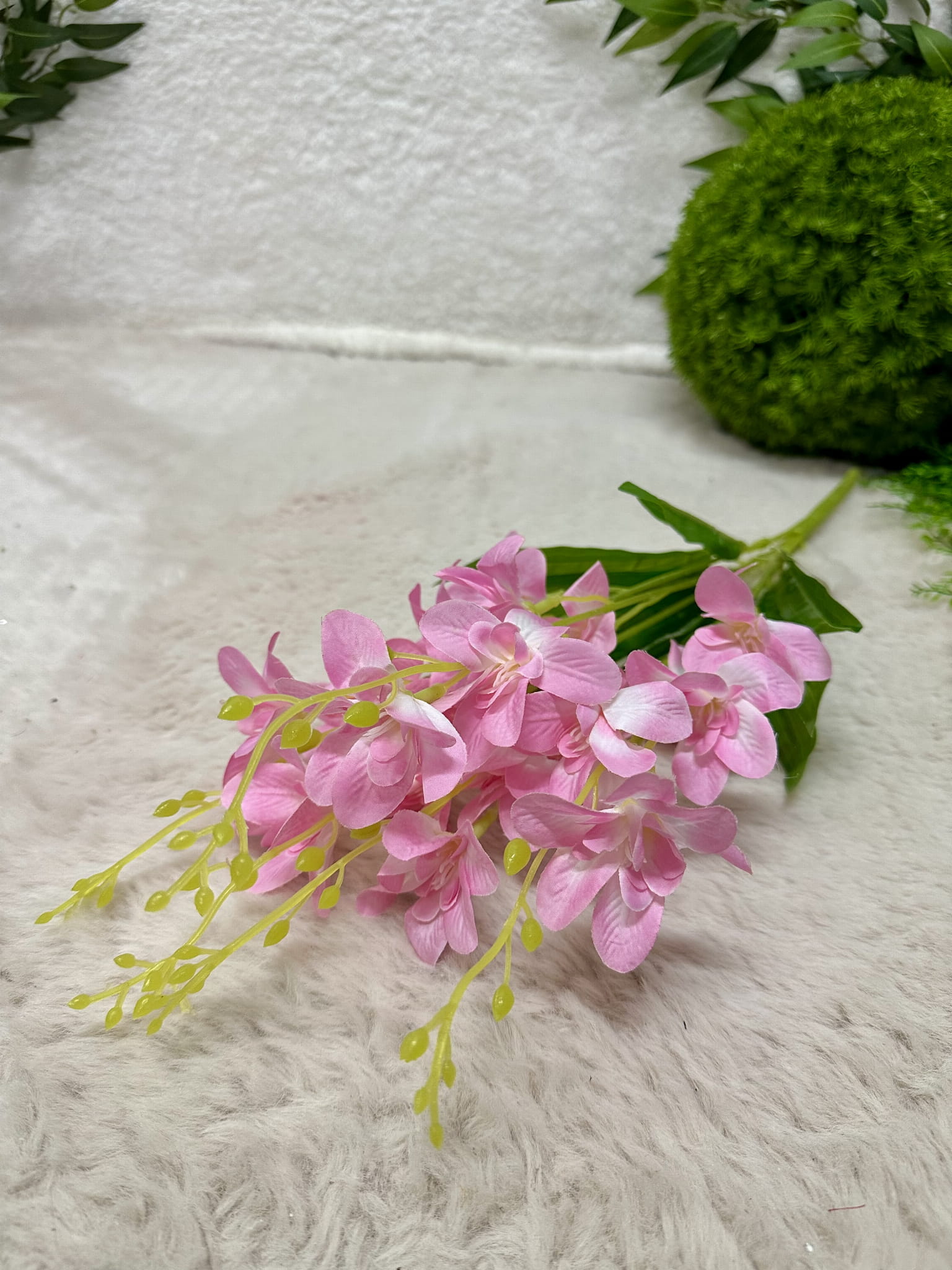 Bukiet frezji idealnie odzwierciedla realne kwiaty. Dzięki pokryciu silikonem kwiaty wyglądają jak żywe. Bukiet jest dość pokaźny także nawet jeden wystarczy, aby stworzyc piękną kompozycję.