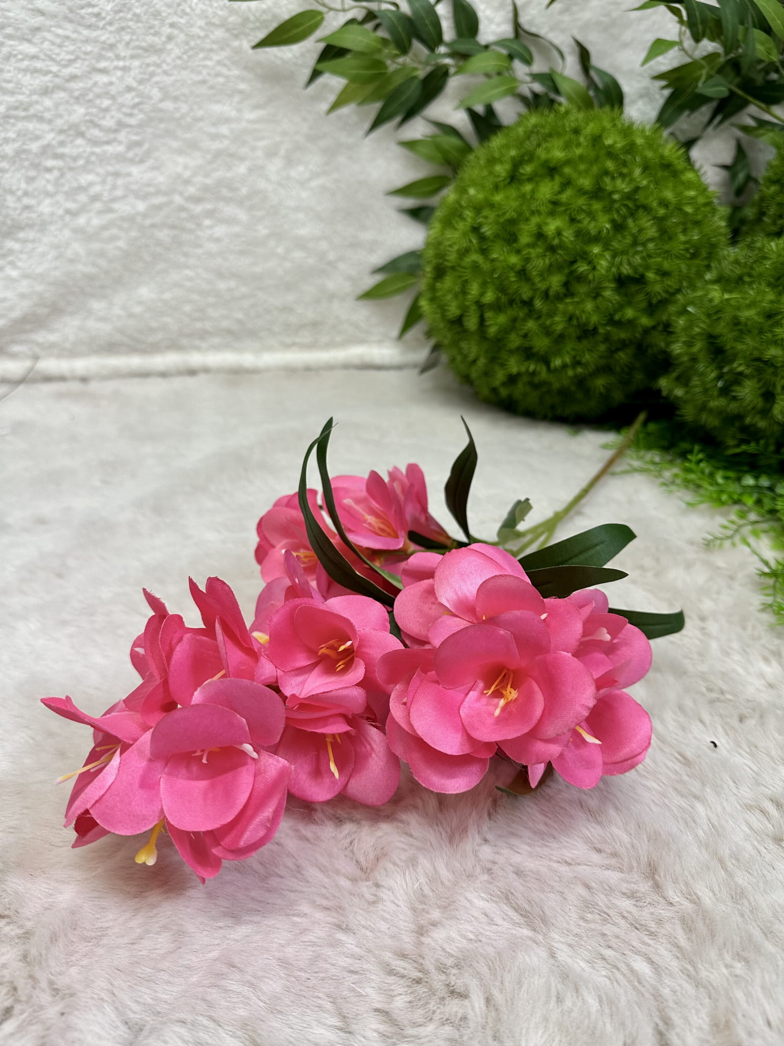 Bukiet frezji idealnie odzwierciedla realne kwiaty. Dzięki pokryciu silikonem kwiaty wyglądają jak żywe. Bukiet jest dość pokaźny także nawet jeden wystarczy, aby stworzyc piękną kompozycję.