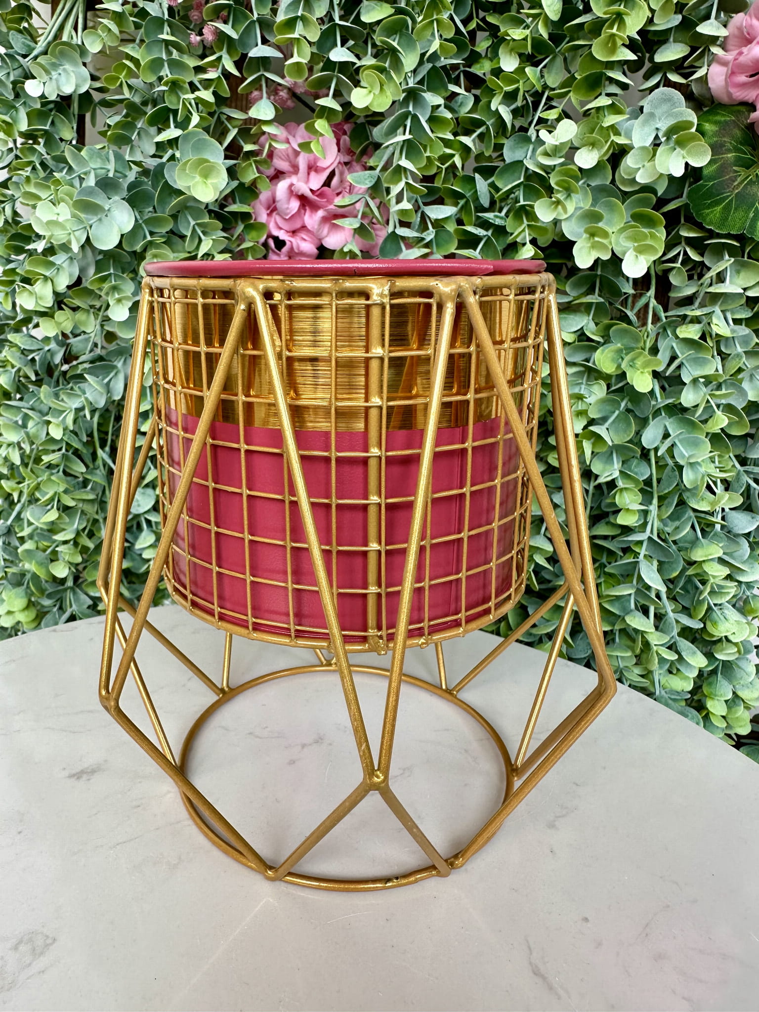 Kwietnik metalowy złoto-różowy ze stojakiem 19