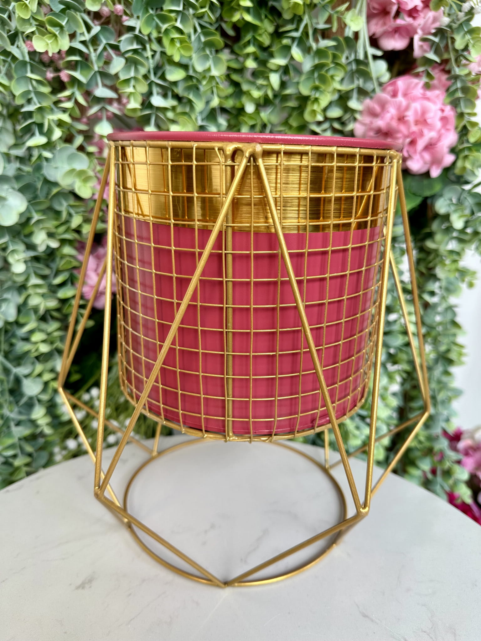 Kwietnik metalowy złoto-różowy ze stojakiem 26