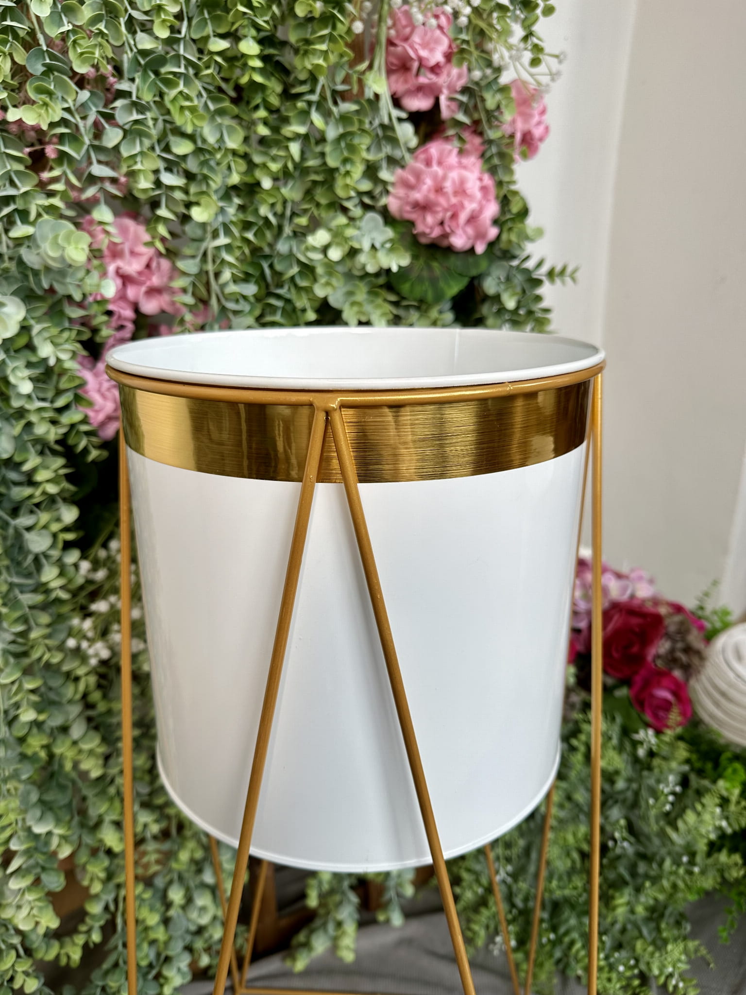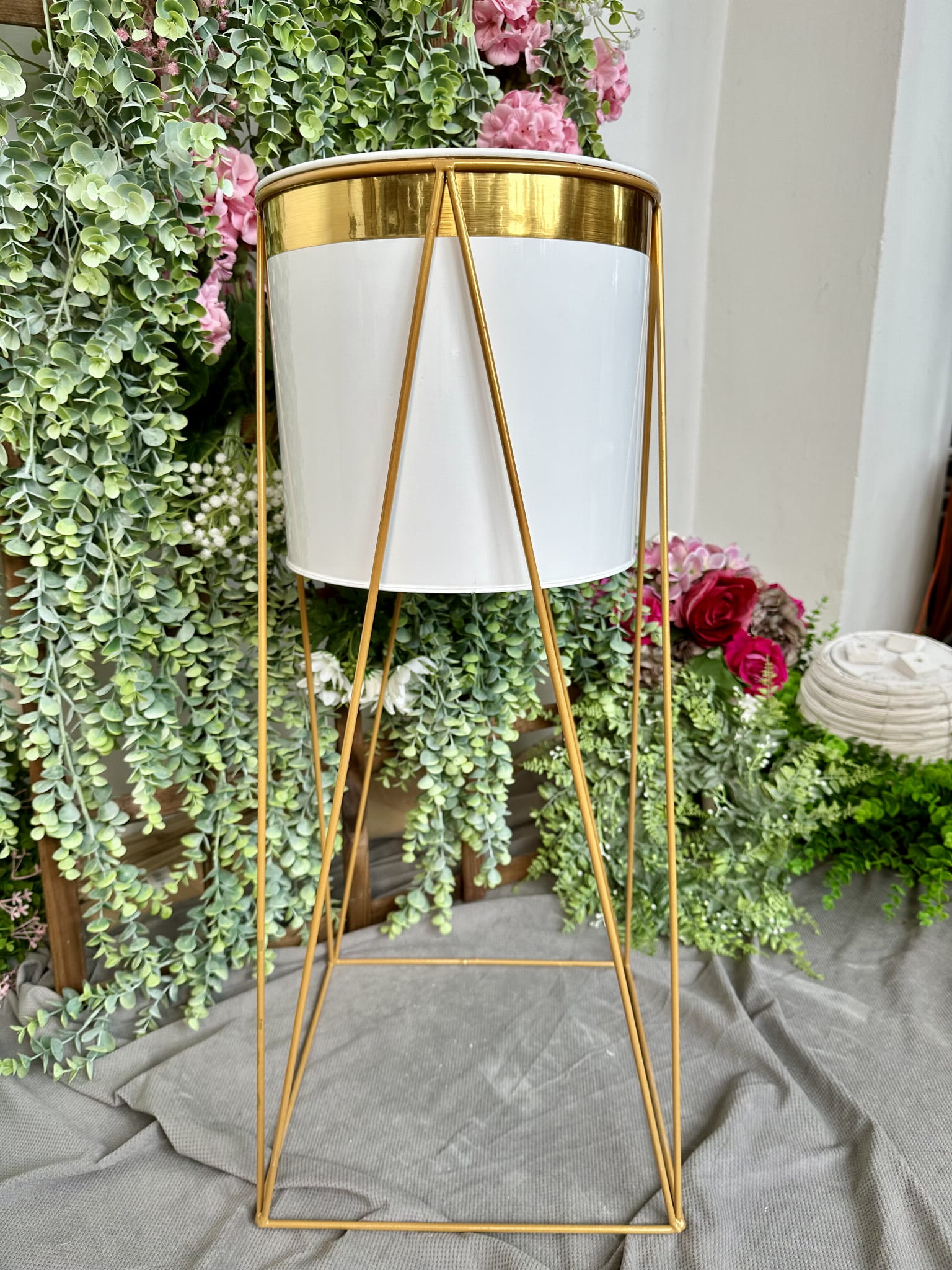 Kwietnik metalowy złoty ze stojakiem 71