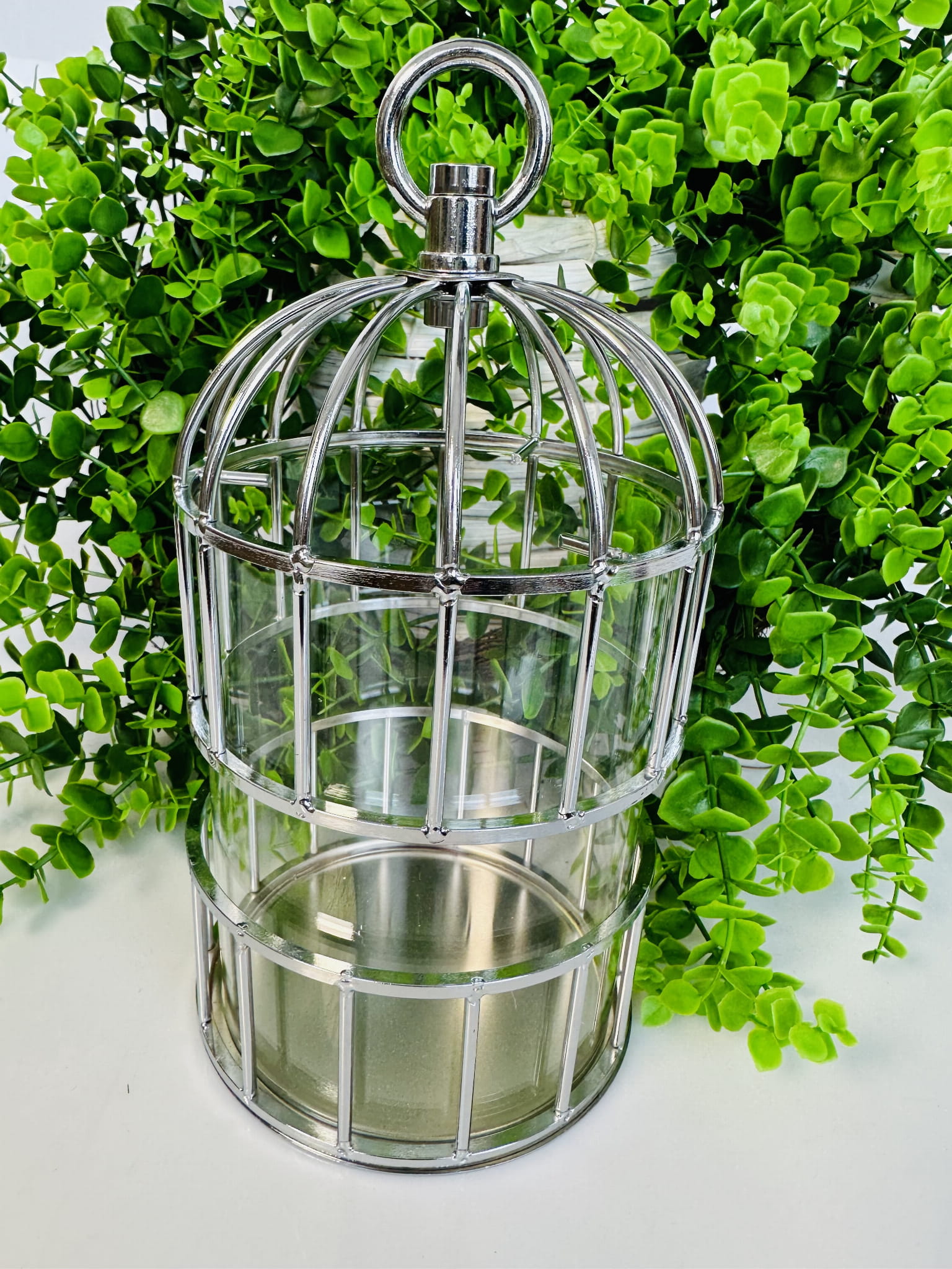 W zimowe wieczory mrok rozproszy oryginalny szklany lampionik w kształcie klatki. Lampion wykonany jest ze szkła oraz stali.