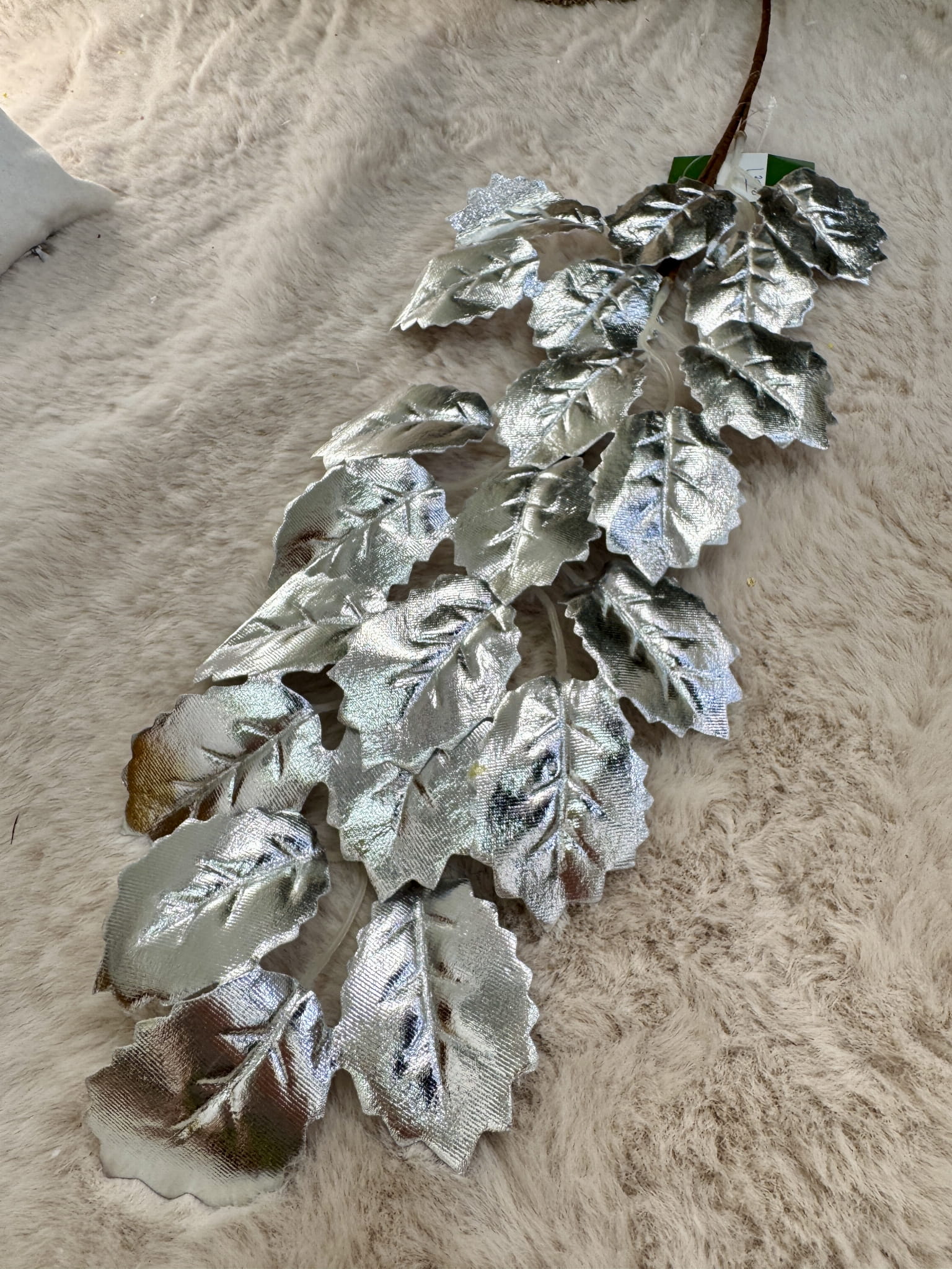 Gałązka Dekoracyjna srebrna to świetny dodatek, który można swobodnie umieścić w ulubionym wazonie jako osobną dekorację lub jako dodatek z innymi kwiatami. Dzięki błyszczącym listków prezentuje się rewelacyjnie.