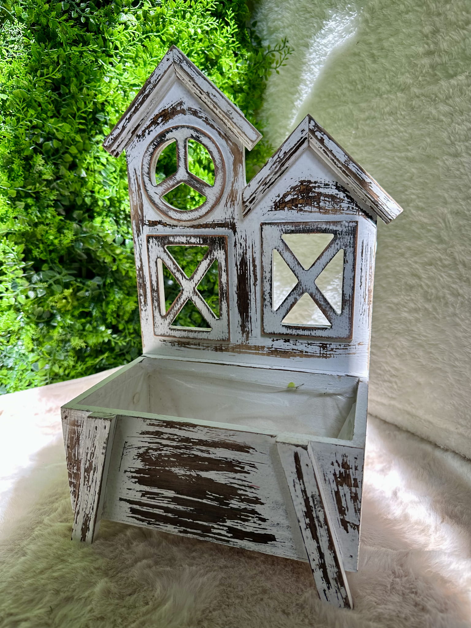 Idealnie wkomponuje się w każde wnętrze. Piękny wzór nadaje jej niepowtarzalnego charakteru. Okiennica do postawienia lub zawieszenia z miejscem na kwiaty.