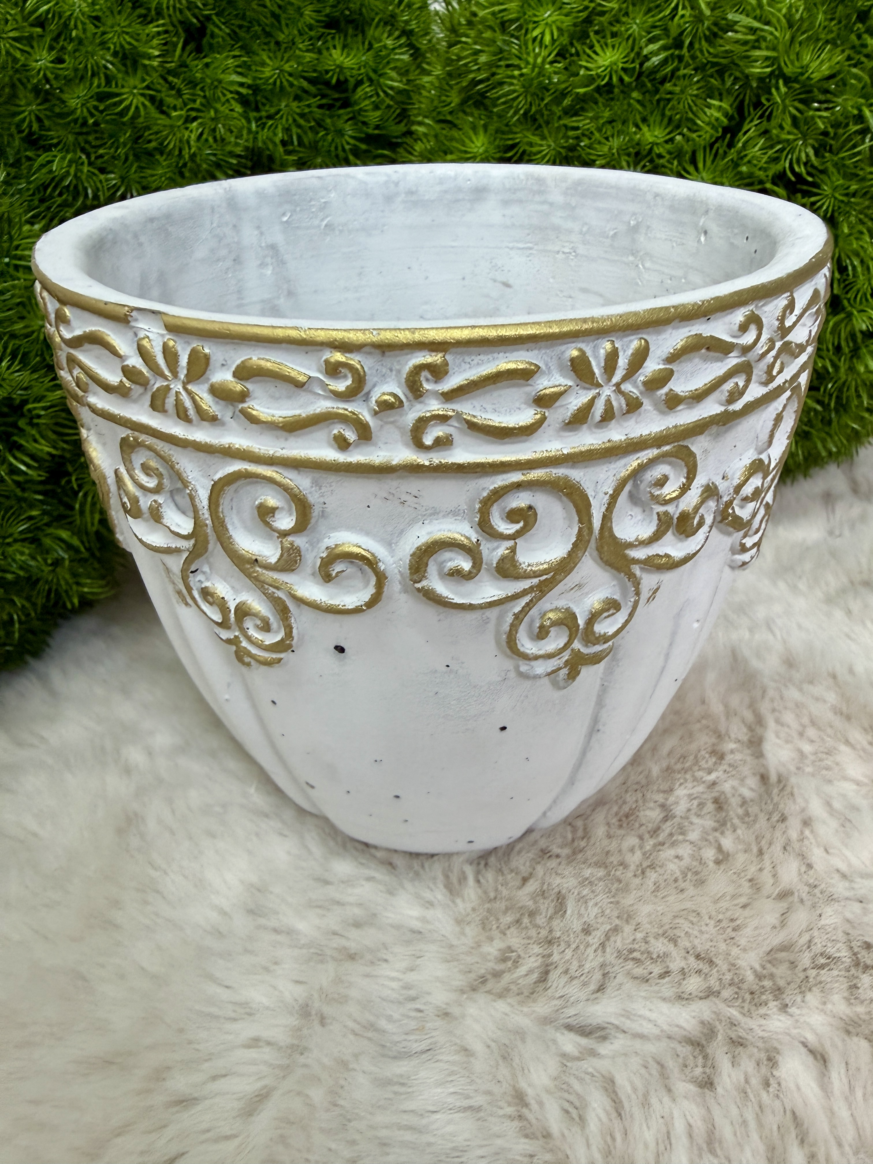 Osłonka / donica dekoracyjna betonowa – biało-złota
