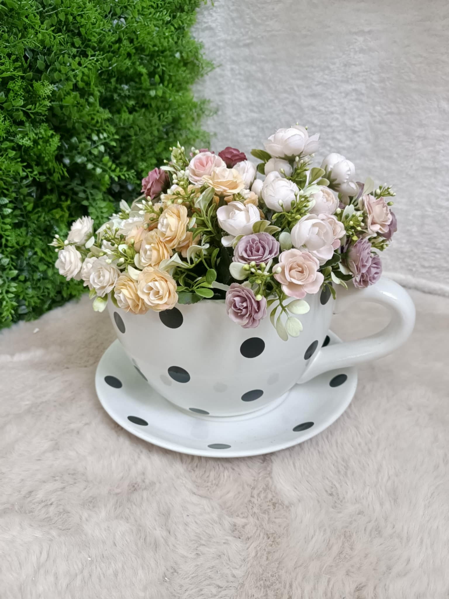 Osłonka filiżanka biała w czarne kropki 16