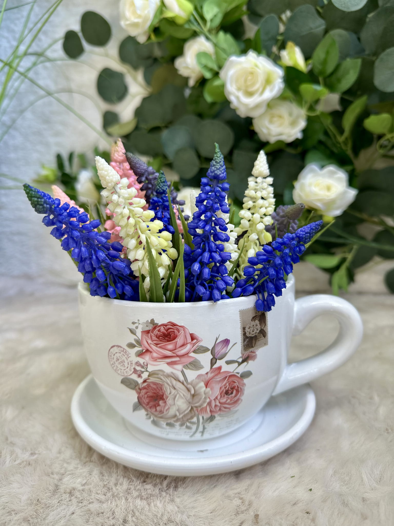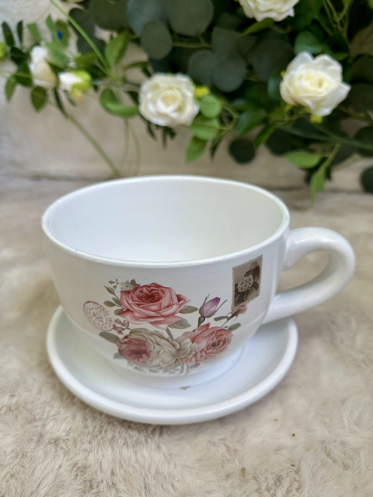 Osłonka filiżanka biała z różą 11