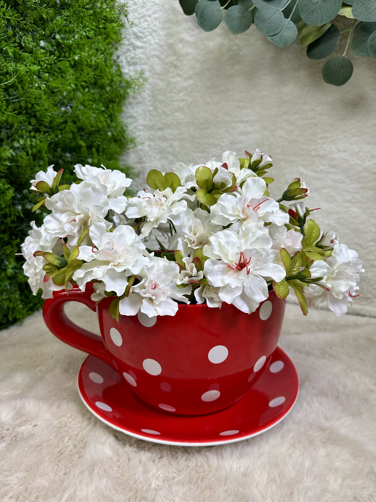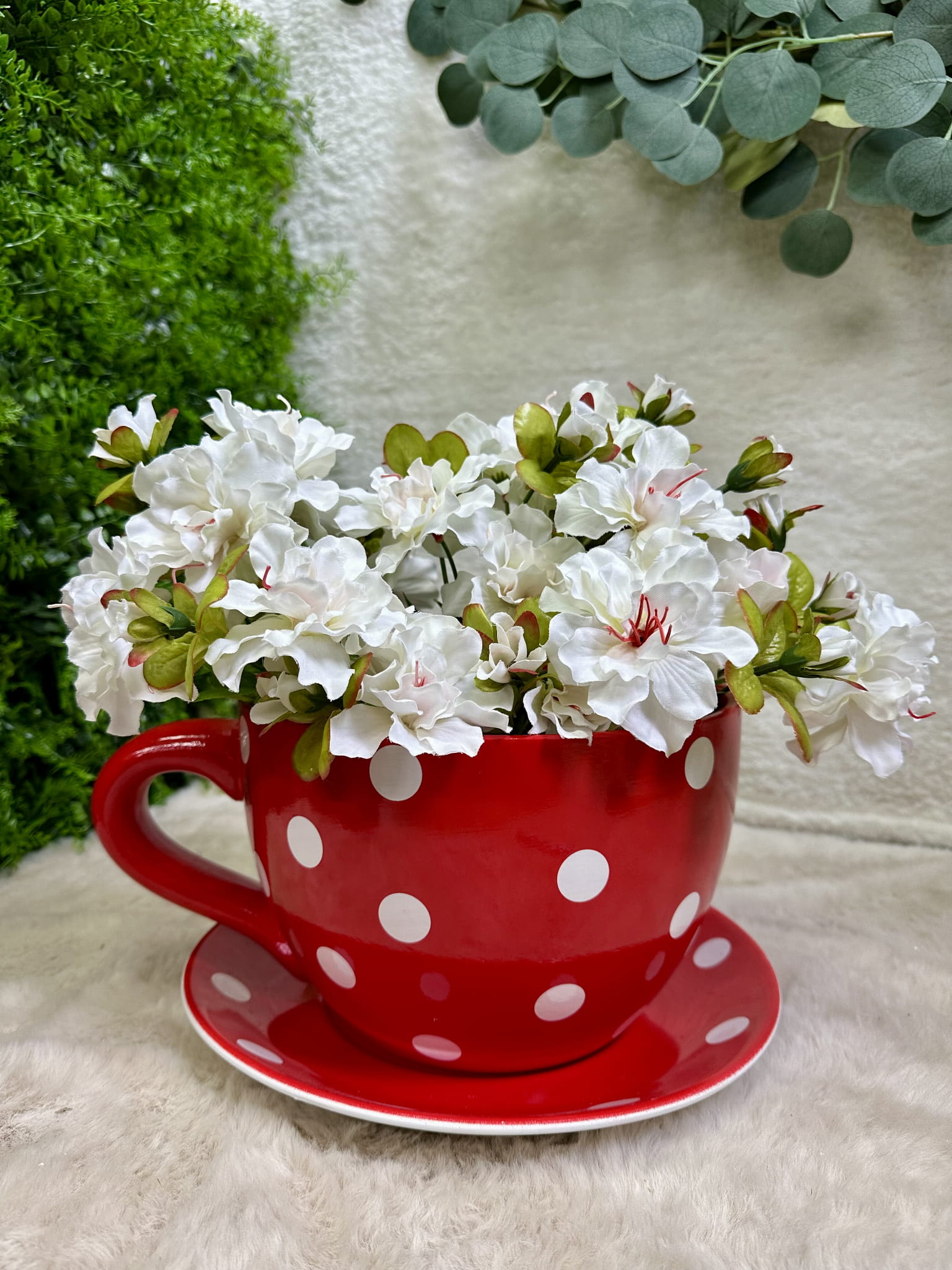 Osłonka filiżanka czerwona w kropki 16