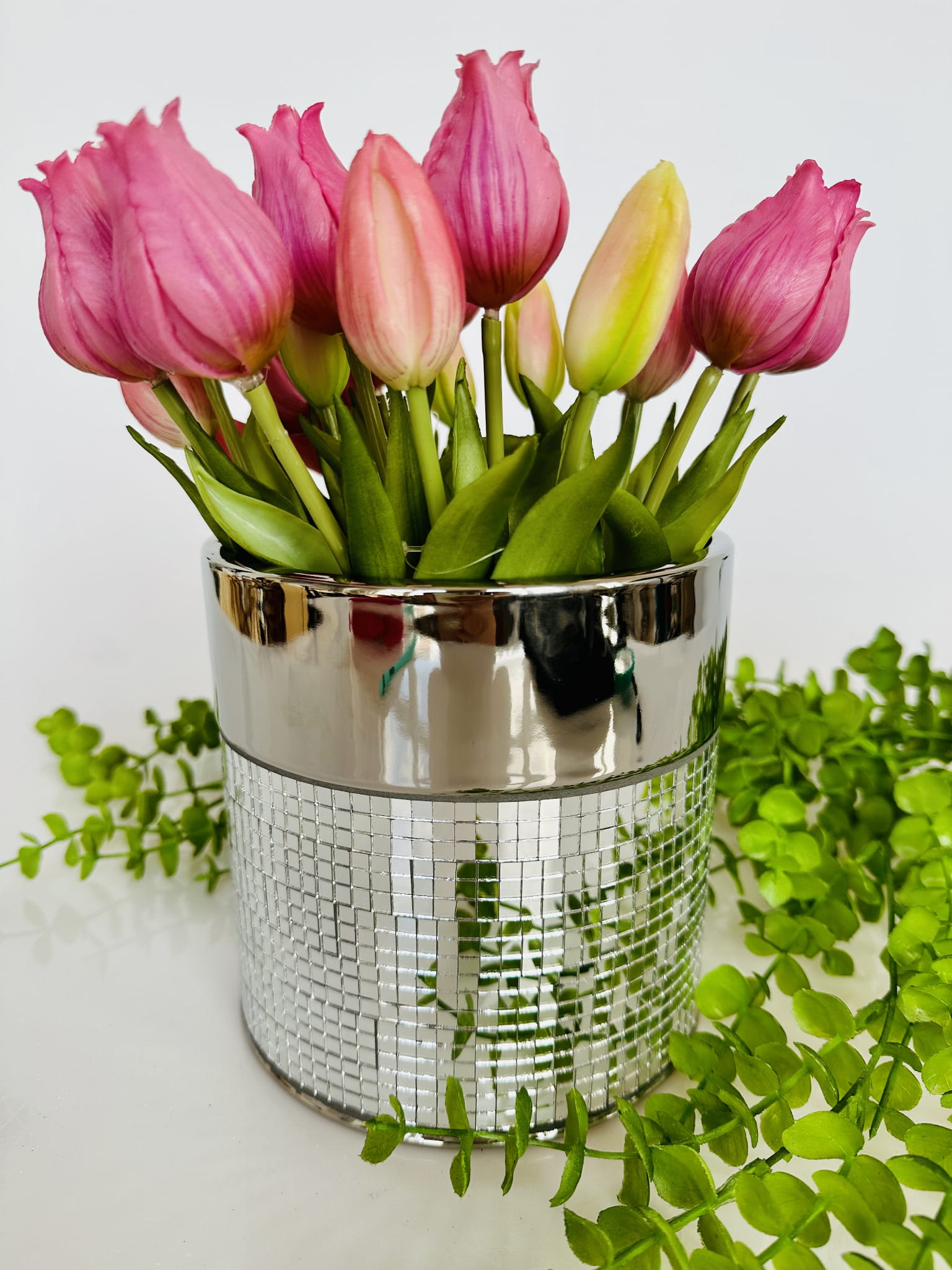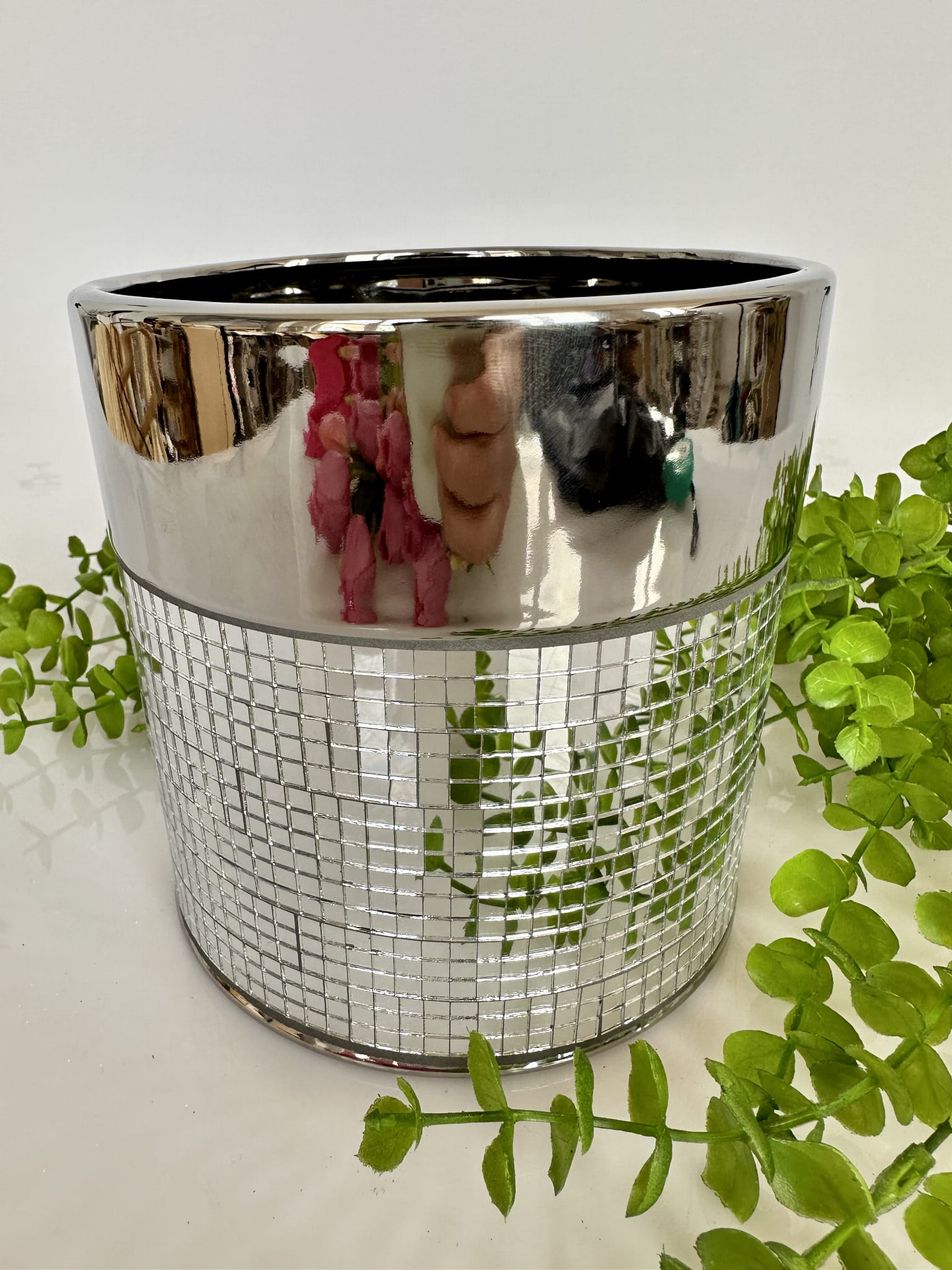 Błyszcząca osłonka , może służyć jako wazon, jak i osłonka. Wkomponuje się idealnie w każdą kompozycje.