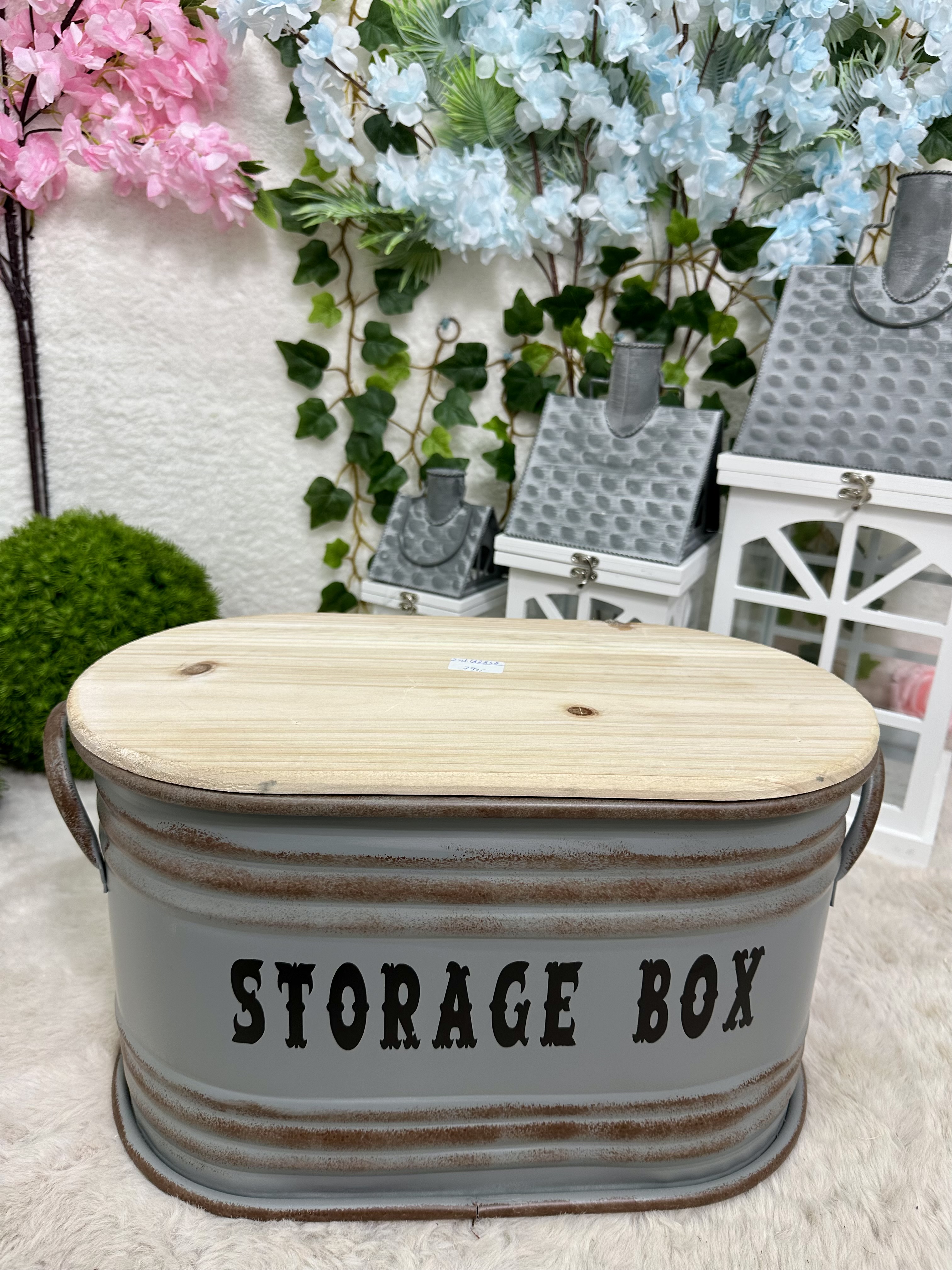 Metalowy Pojemnik Storage Box – Styl Industrialny z Drewnianym Akcentem