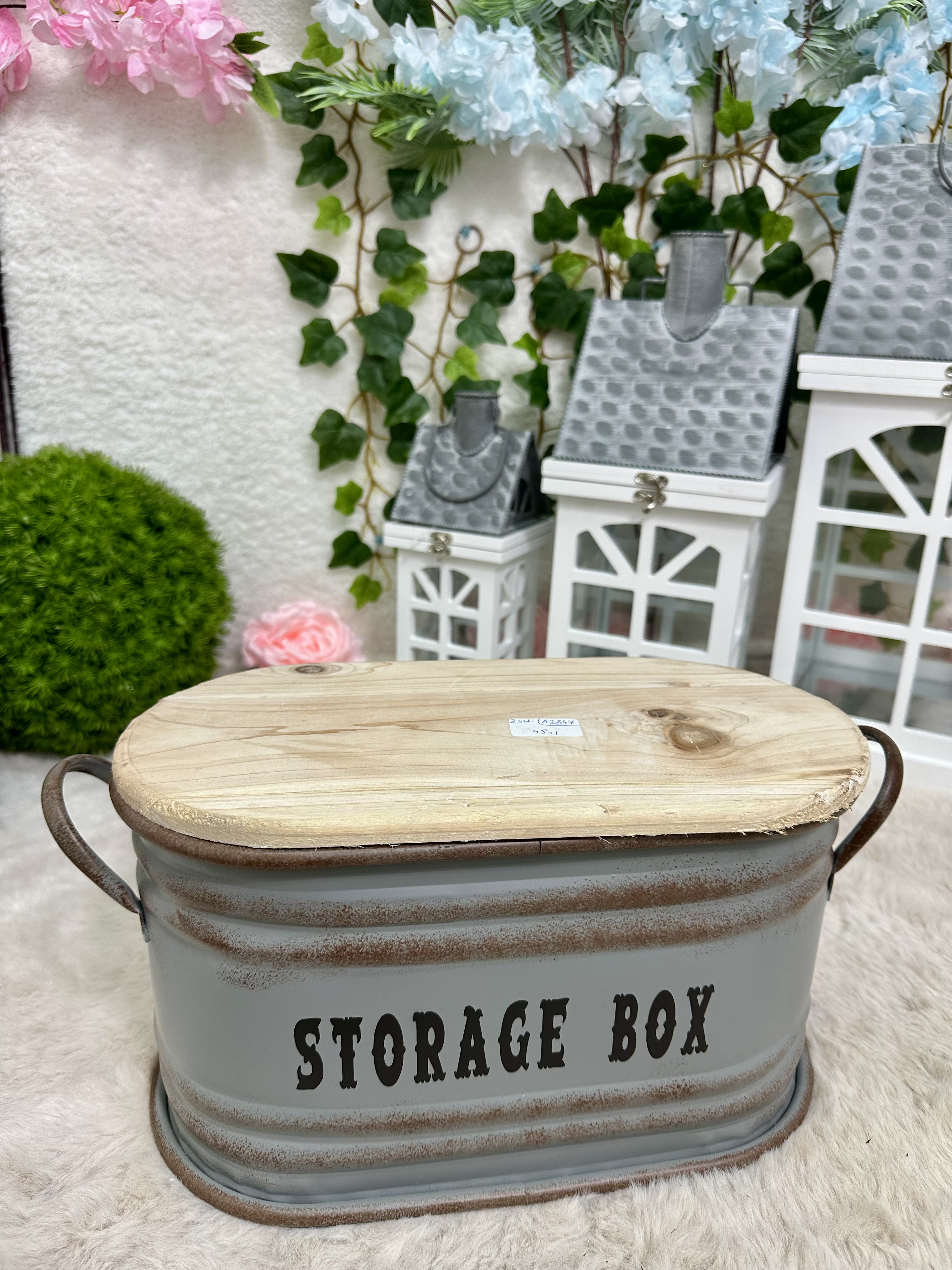 Metalowy Pojemnik Storage Box – Styl Industrialny z Drewnianym Akcentem