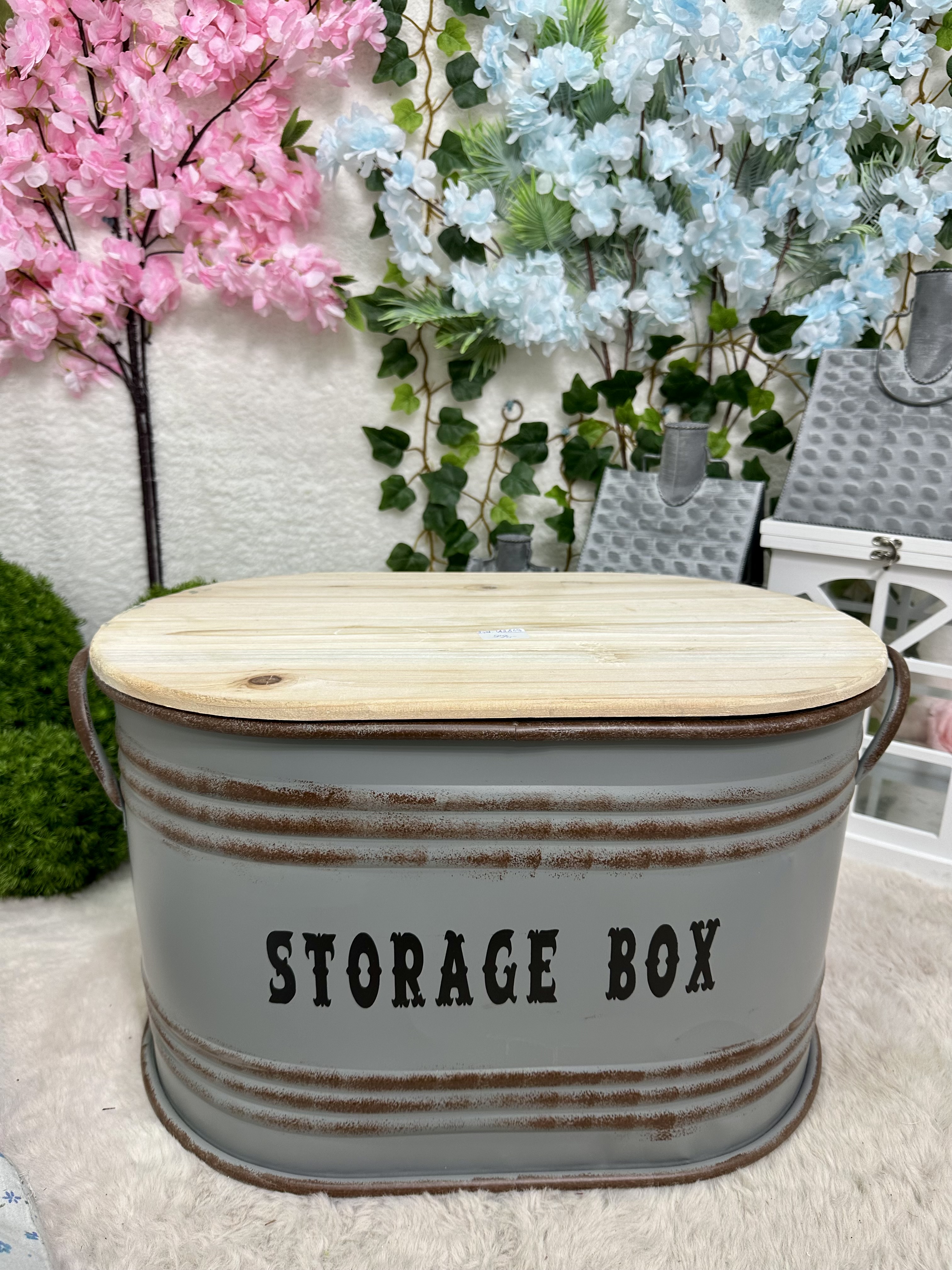 Metalowy Pojemnik Storage Box – Styl Industrialny z Drewnianym Akcentem