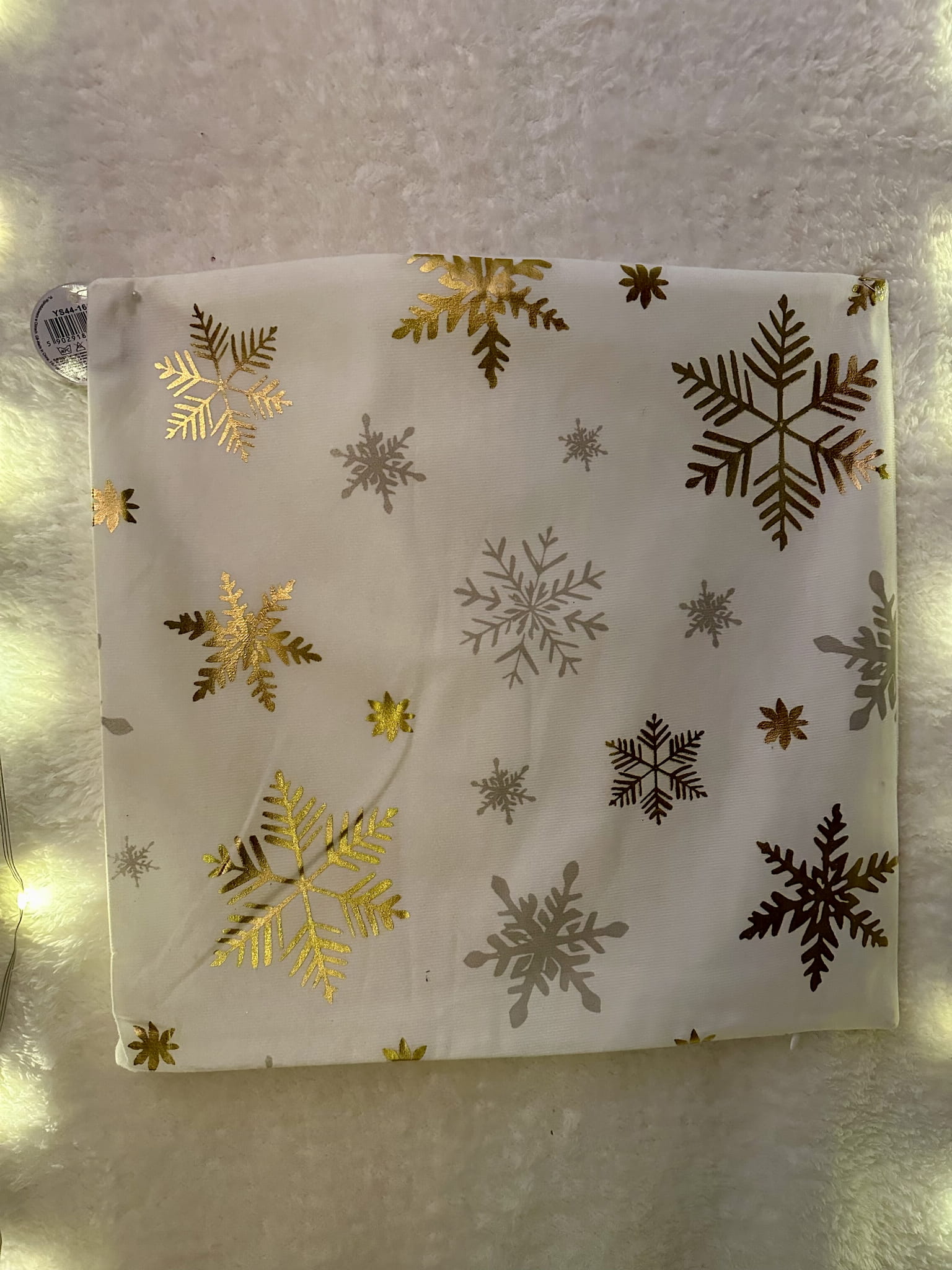 Poszewka dekoracyjna , uszyta z przyjemnej w dotyku welwetowej tkaniny, to dodatek, którego nie może zabraknąć w Twoim domu. Zdobiona metalicznym motywem śnieżynek doda wnętrzom oryginalnego charakteru. Mieniący się nadruk w złotej kolorystyce, naniesiony na kontrastujące, białe tło, tworzy niezwykłą kompozycję dedykowaną przede wszystkim nowoczesnym aranżacjom. Zamek błyskawiczny wszyty w jednym z boków pozwala na szybką i bezproblemową zmianę poszewki.