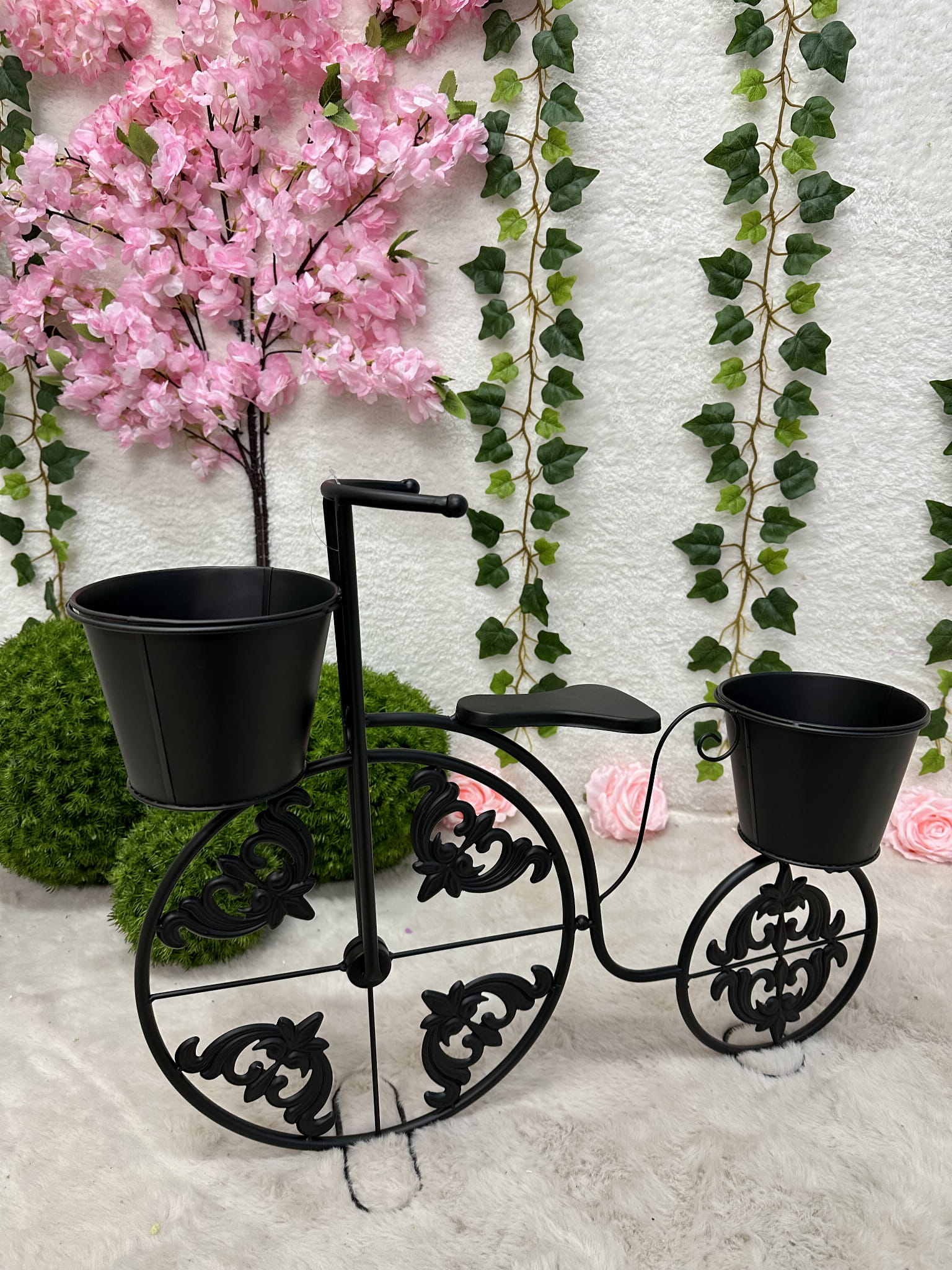 Rower metalowy czarny z miejscem na donice 50