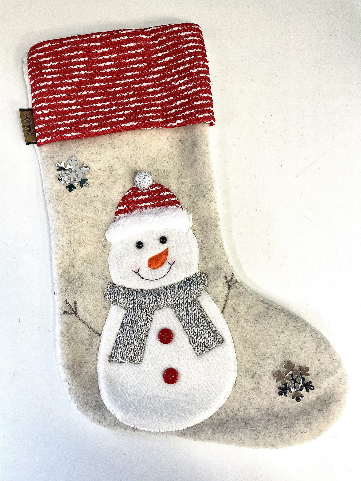 Uwielbiasz dodatki świąteczne? Urocza skarpeta do udekorowania na przykład kominka ozdobiona Motywem świątecznym..
