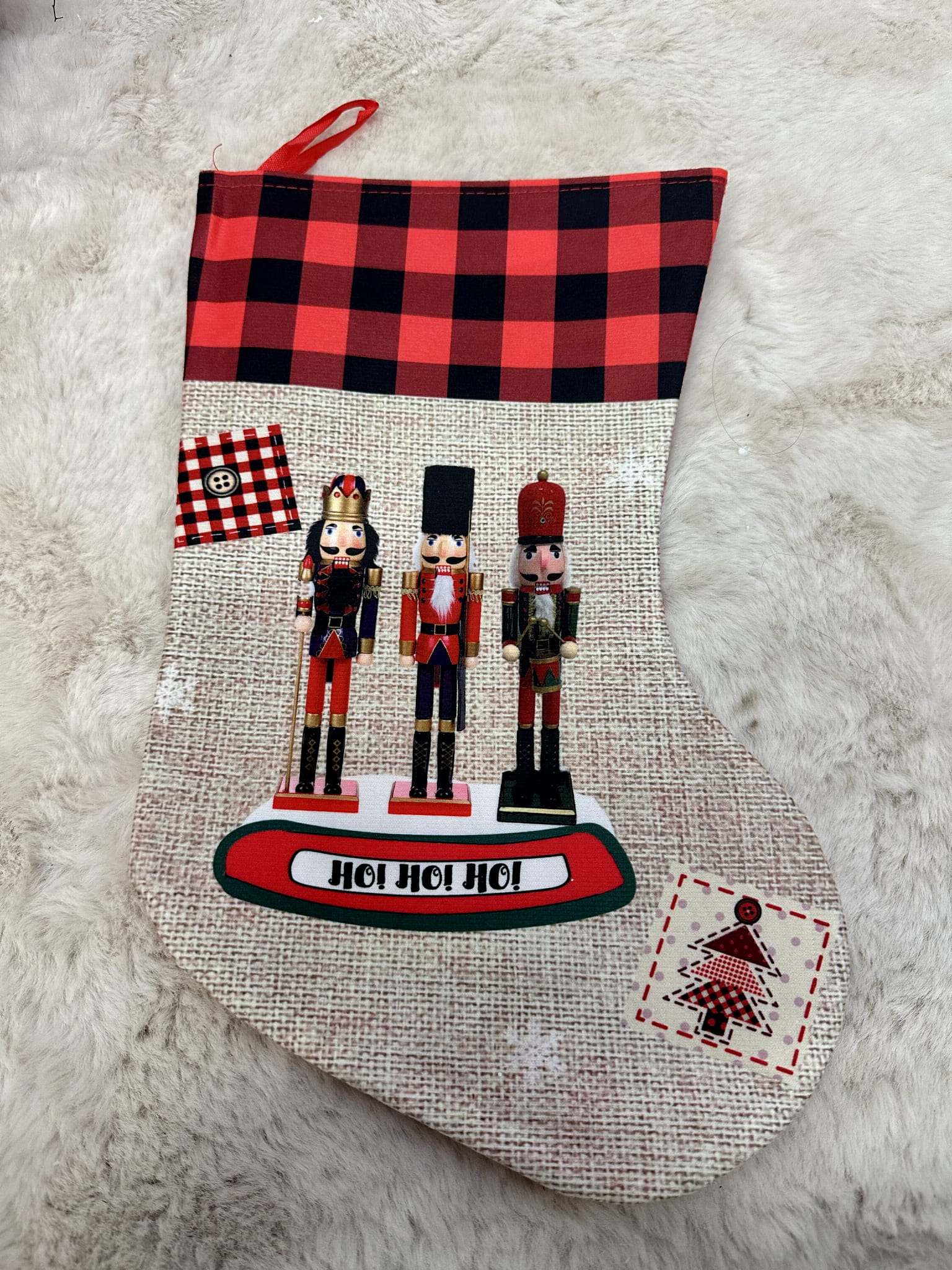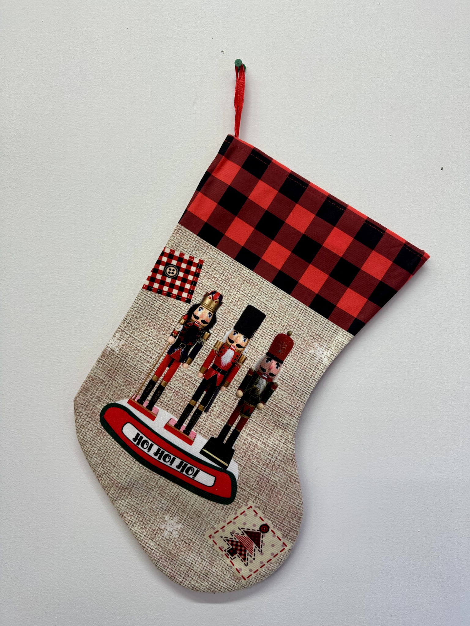 Uwielbiasz dodatki świąteczne? Urocza skarpeta do udekorowania na przykład kominka ozdobiona Motywem świątecznym..