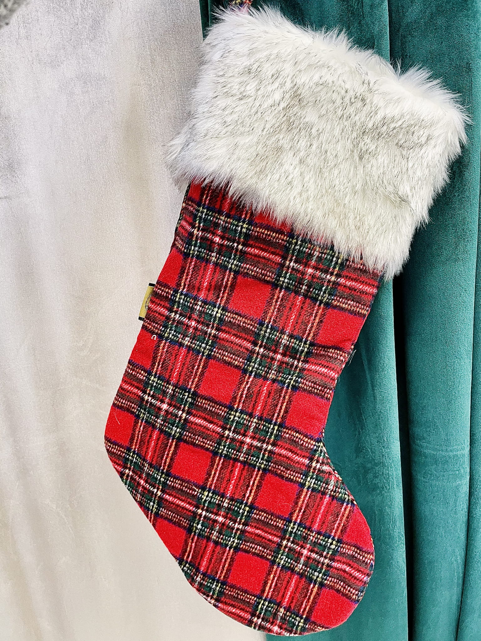 Uwielbiasz dodatki świąteczne? Urocza skarpeta do udekorowania na przykład kominka ozdobiona Motywem świątecznym..