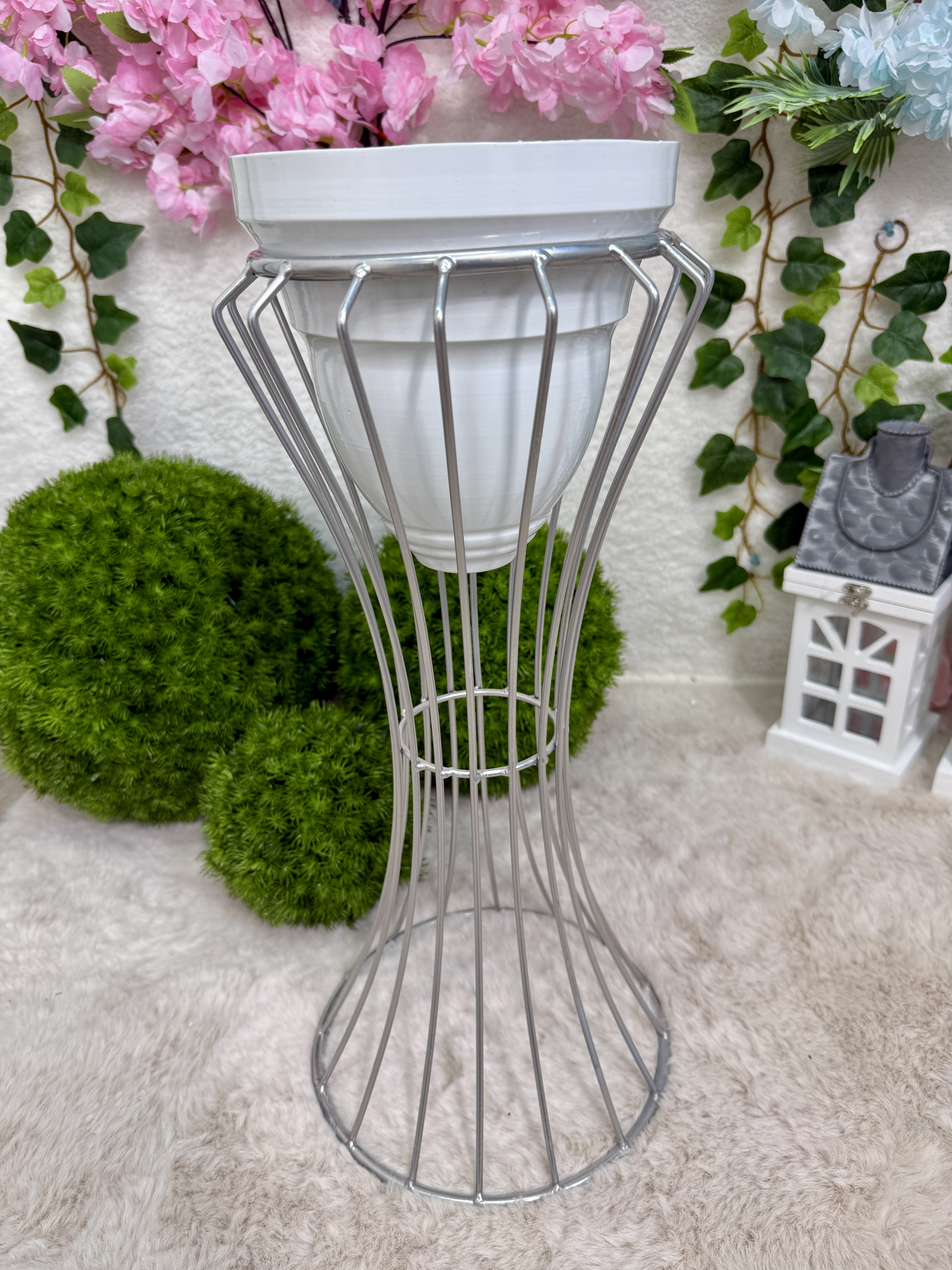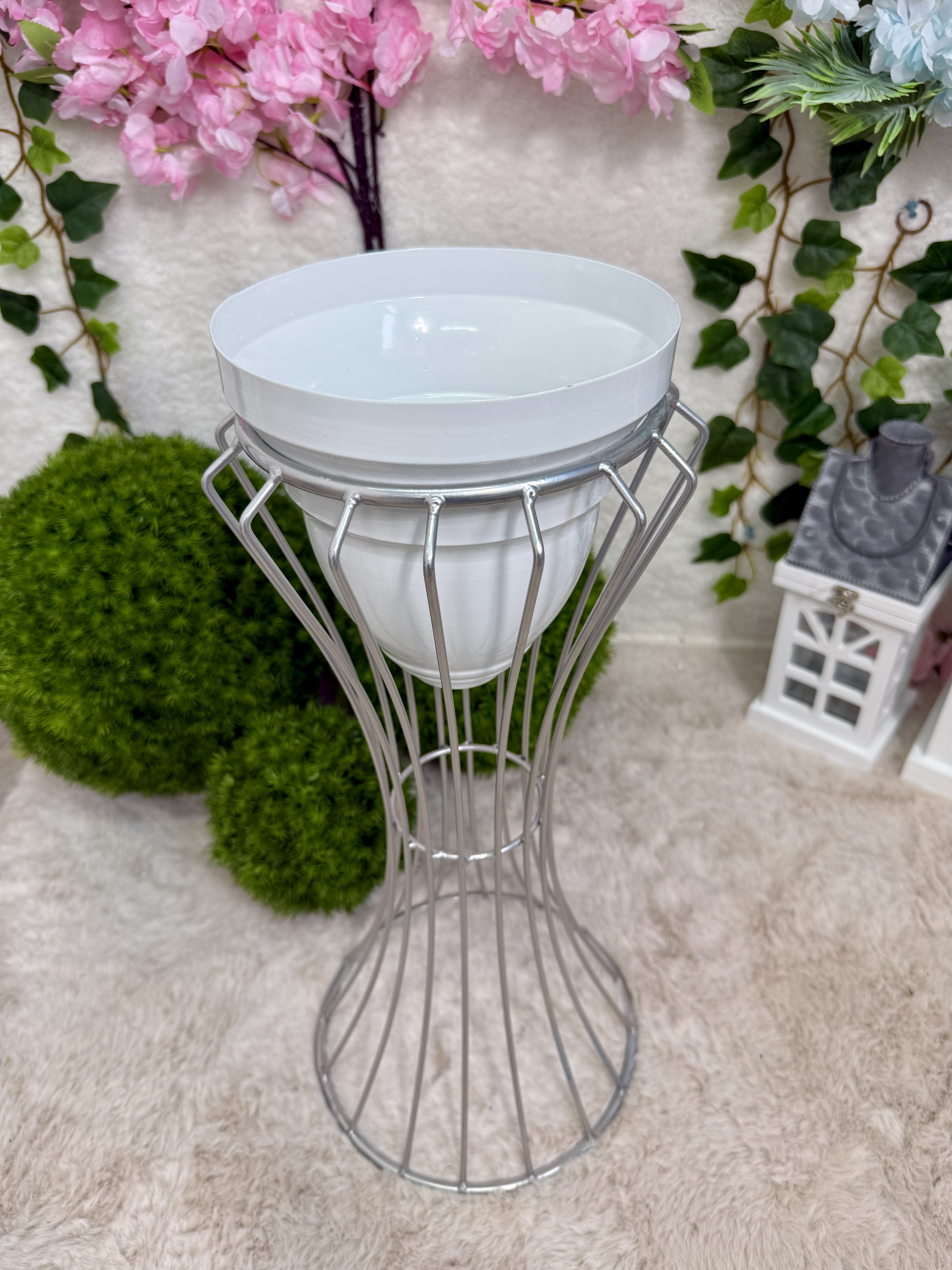 Stojak z donicą biało -srebrny 52