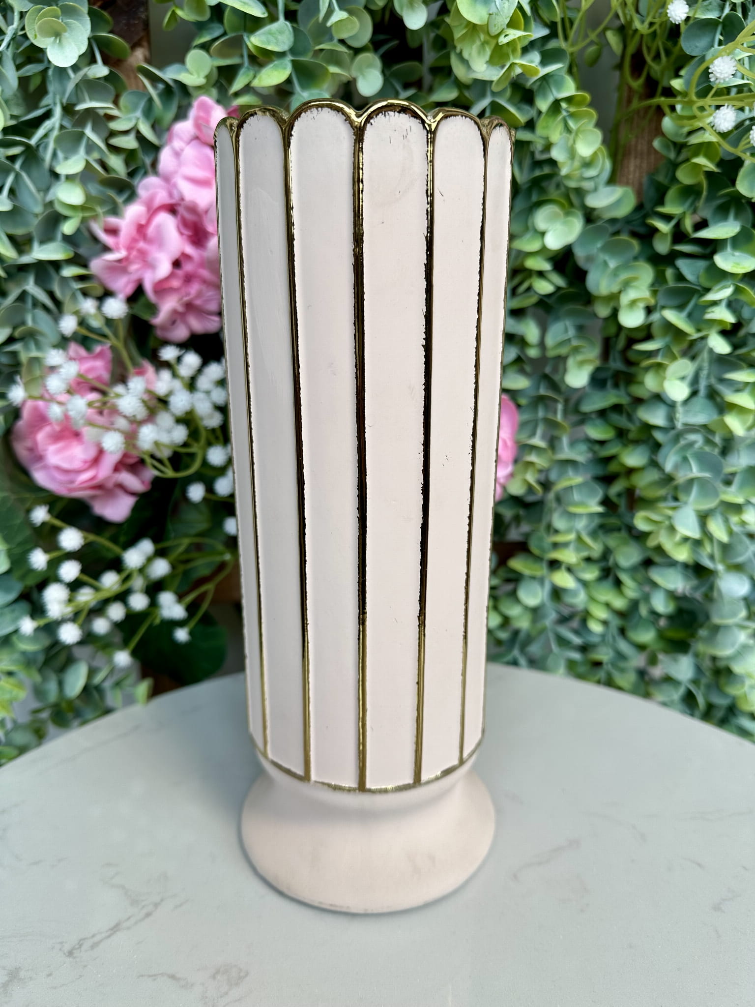 Świecznik ceramiczny rózowo-złoty 26