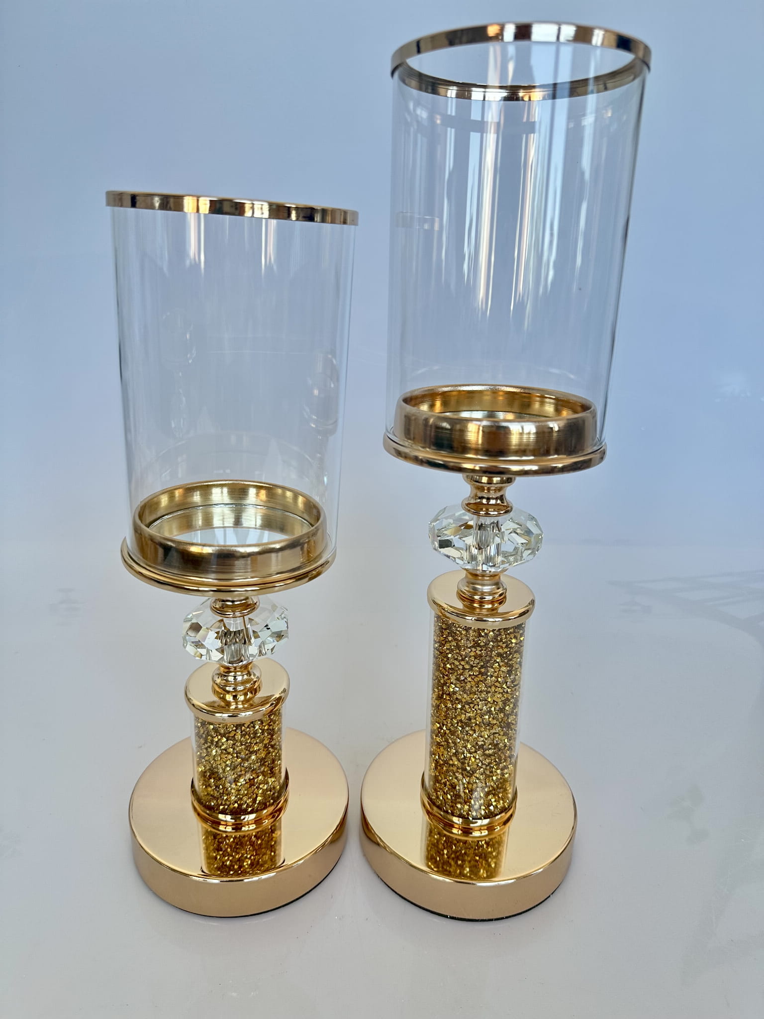 Zarówno w salonie, jak i sypialni doskonale sprawdzi się kolekcja prostych, błyszczących świeczników z diamencikami.