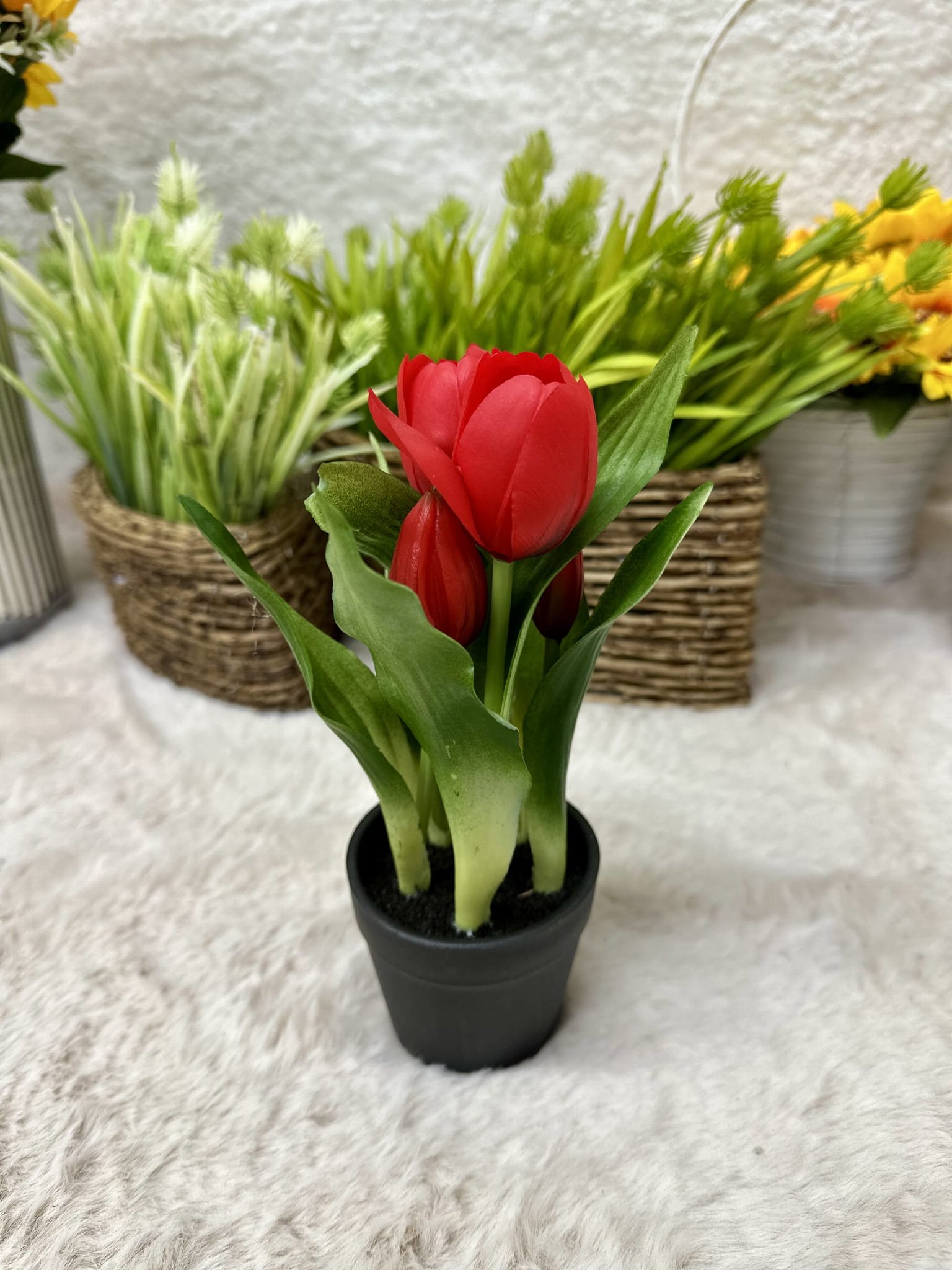 Tulipany to jedne z niemal "obowiązkowych" wiosennych kwiatów, które warto mieć w swoim domu. Kwiaty ożywią i wprowadzą świeżość do każdego pomieszczenia. Tulipany gumowe wyglądają jak żywe, przyciągają wzrok każdego. Zaproś je do swojego domu i ciesz się pięknymi kwiatami przez cały rok.